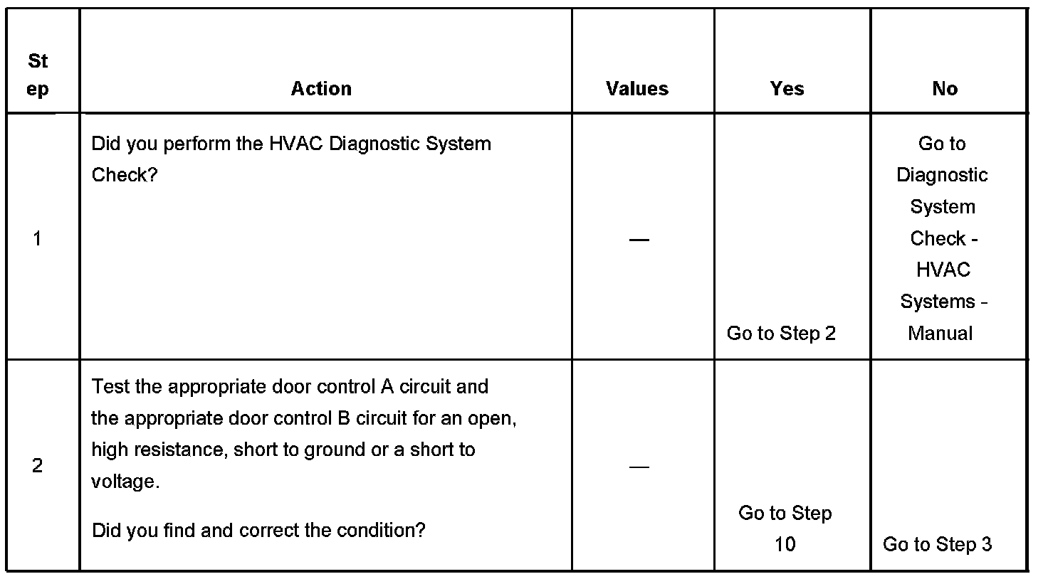 When a calibration or recalibration procedure is performed, the HVAC control module calculates the door travel range. The HVAC control module compares the total number of pulses to calibrated limits. If the total pulse count is less than or equal to the maximum calibrated limited and more that or equal to the minimum calibrated limit, then the calibration is considered successful.