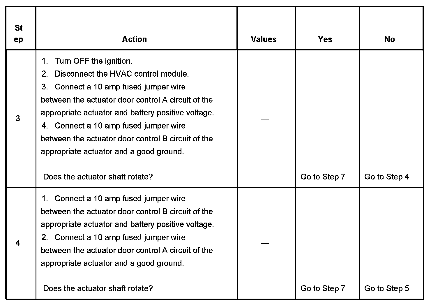 3. This step drives the actuator in one direction. The actuator shaft will not move if the actuator door is already in the position you are attempting to drive it to.