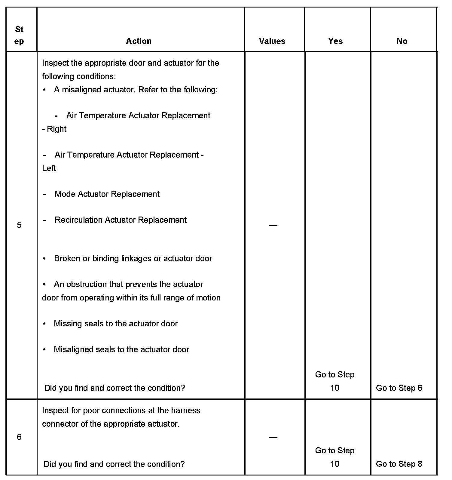 - Inspect the appropriate actuator door and actuator for the following conditions: