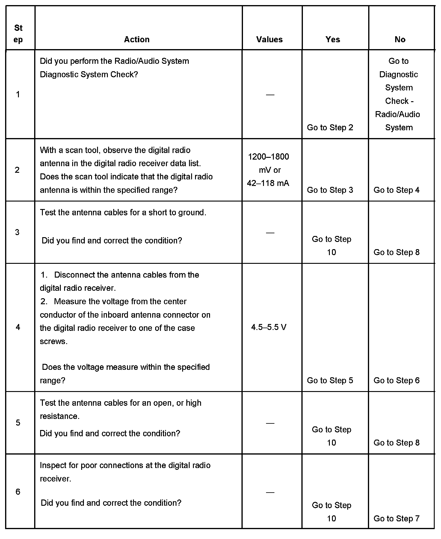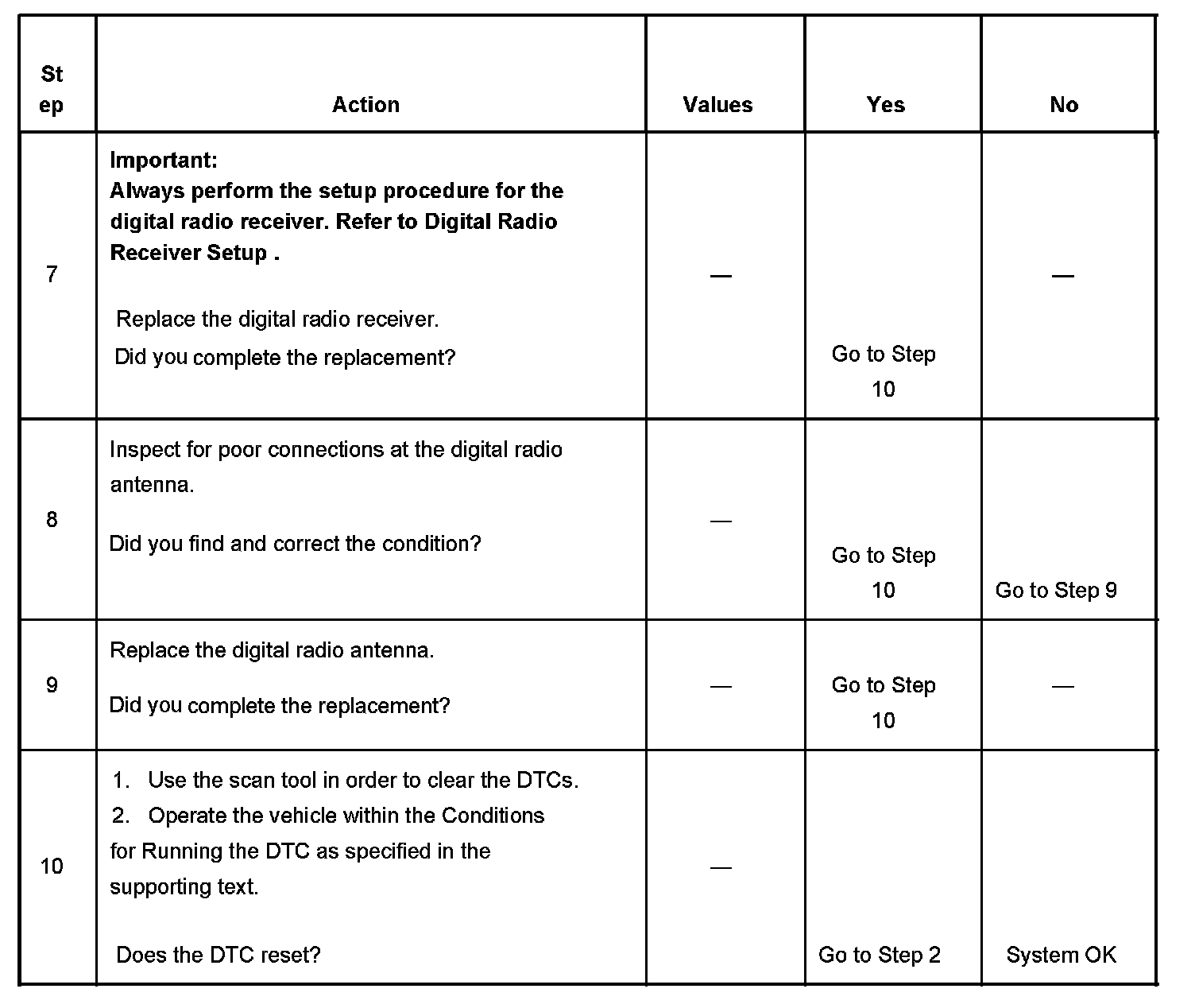 The number below refers to the step number on the diagnostic table.