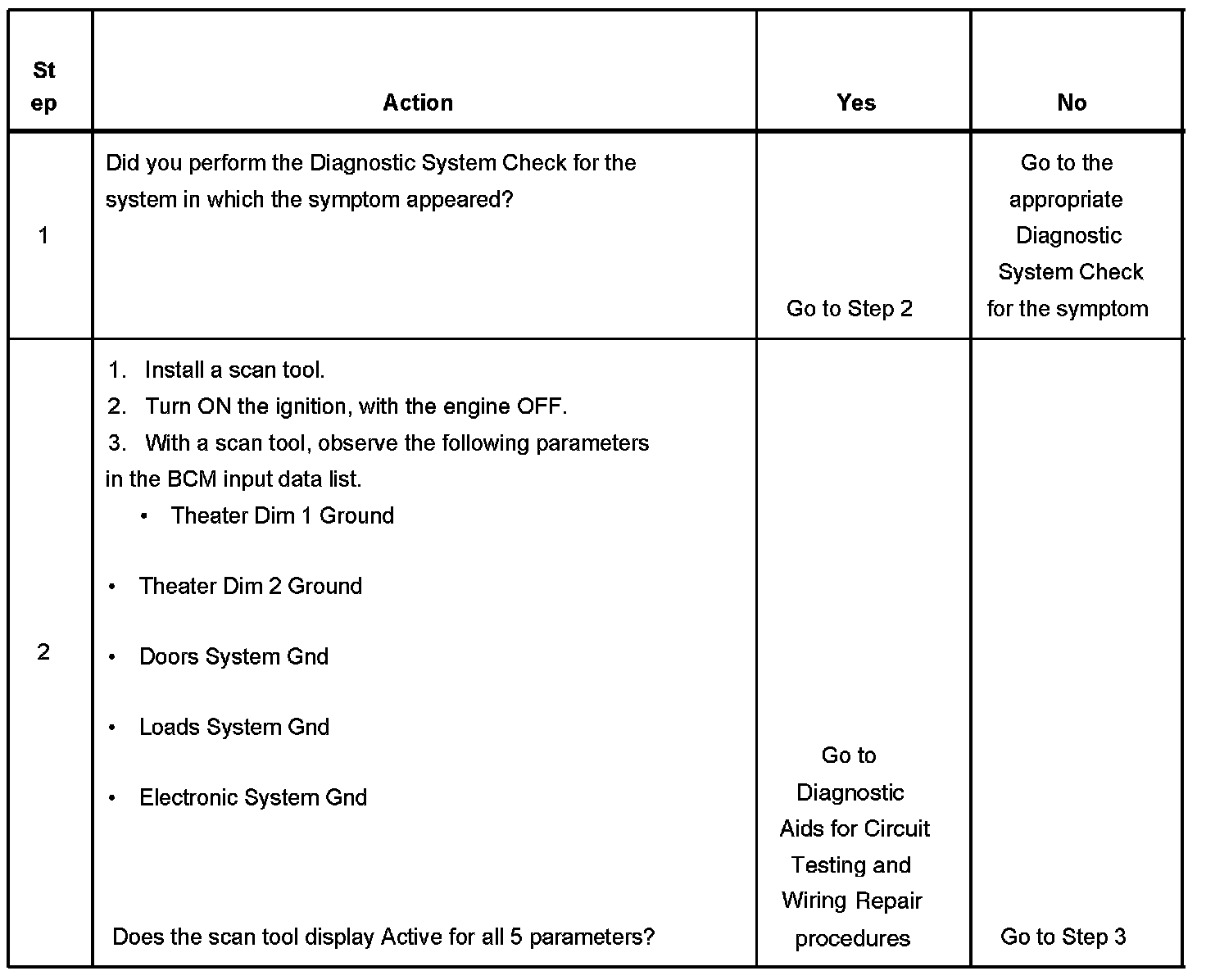 The BCM ground circuits provide ground for the 2 Theater Dimming systems for interior lamps, BTSI solenoid, BCM electronics and the door locks.