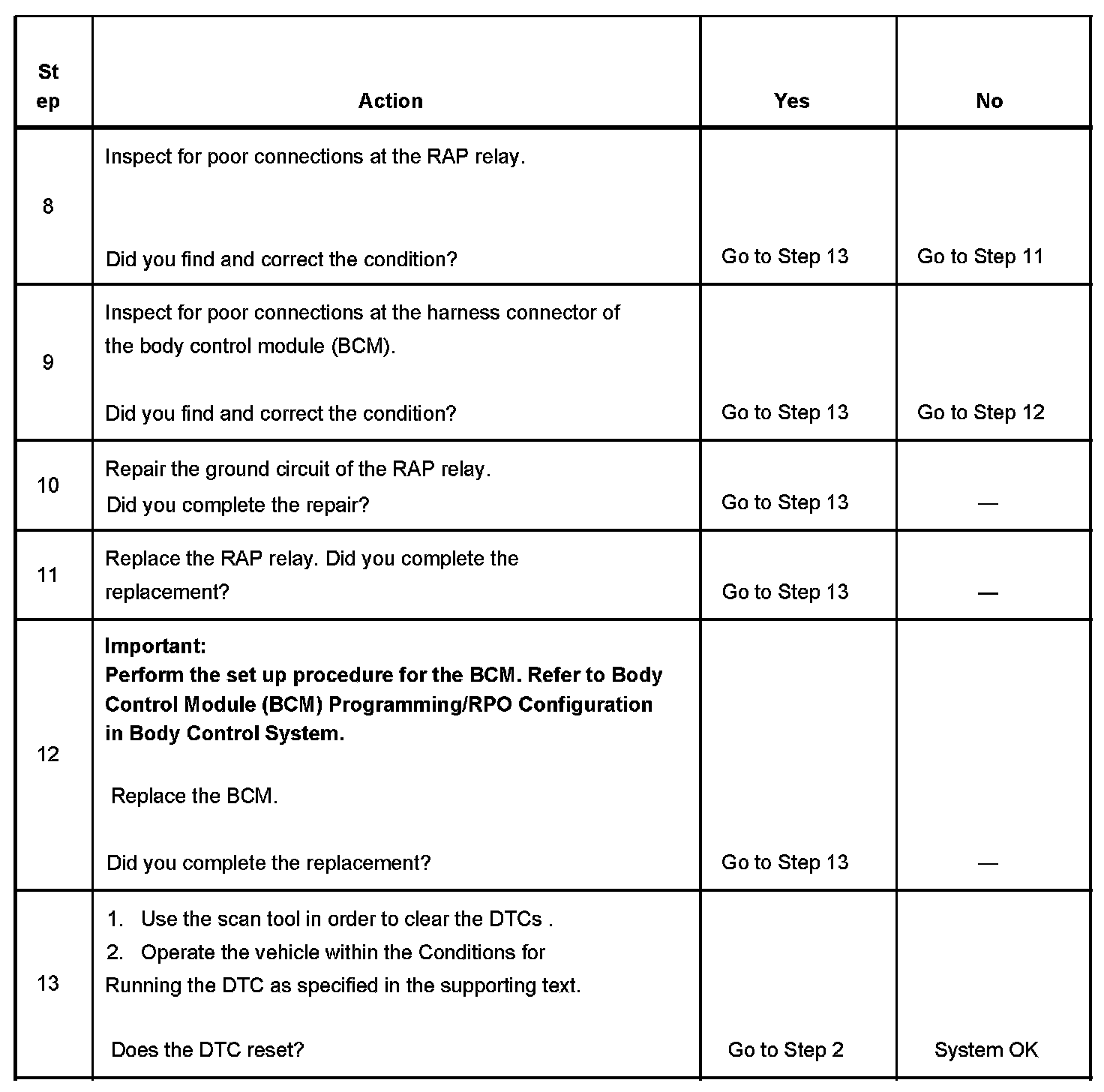 - The BCM detects a short to battery in the RAP relay control circuit when the BCM is trying to de-energize the RAP relay.