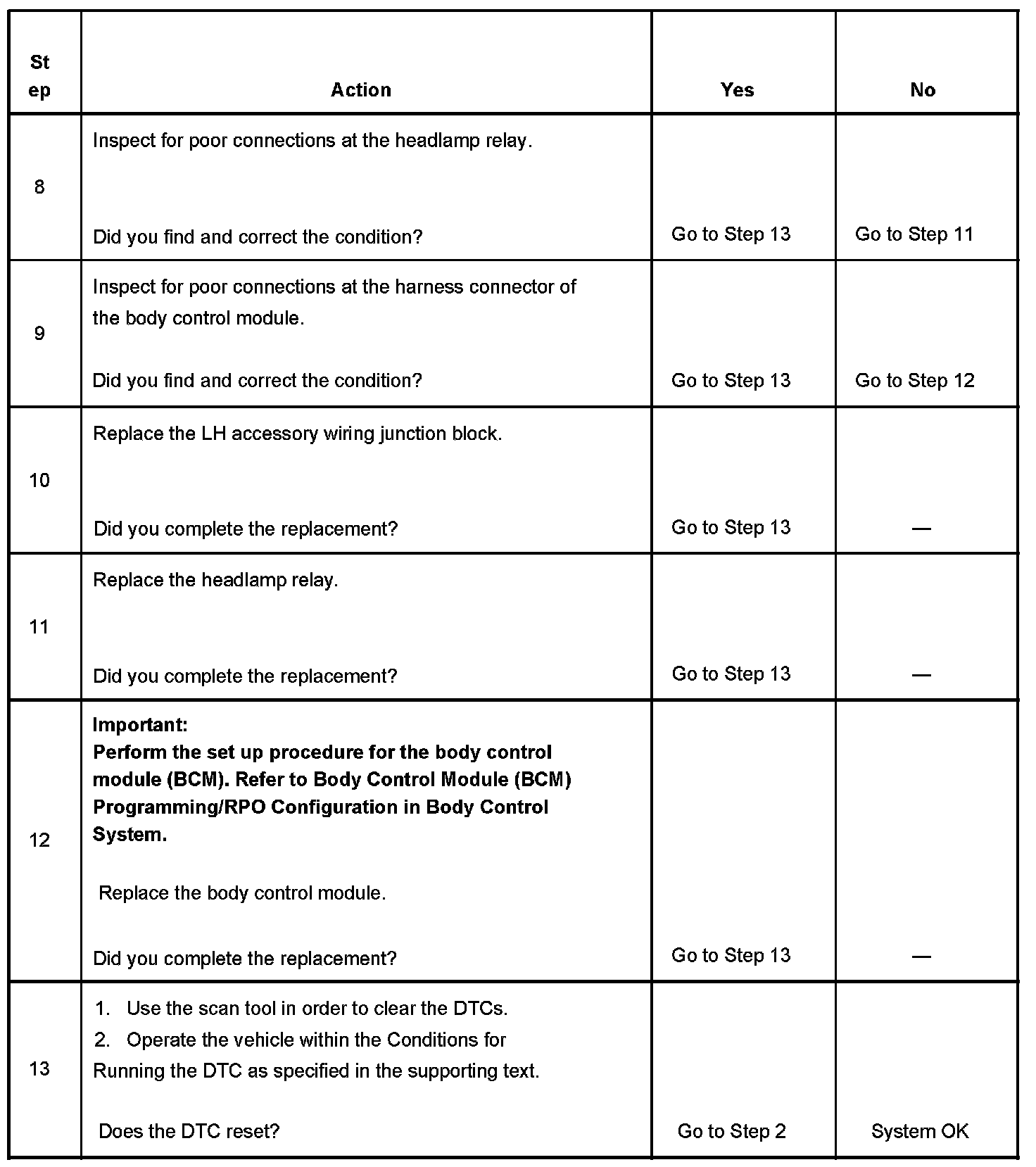 - The BCM detects a short to battery in the headlamp coil control circuit when the BCM tries to energize the headlamp relay.
