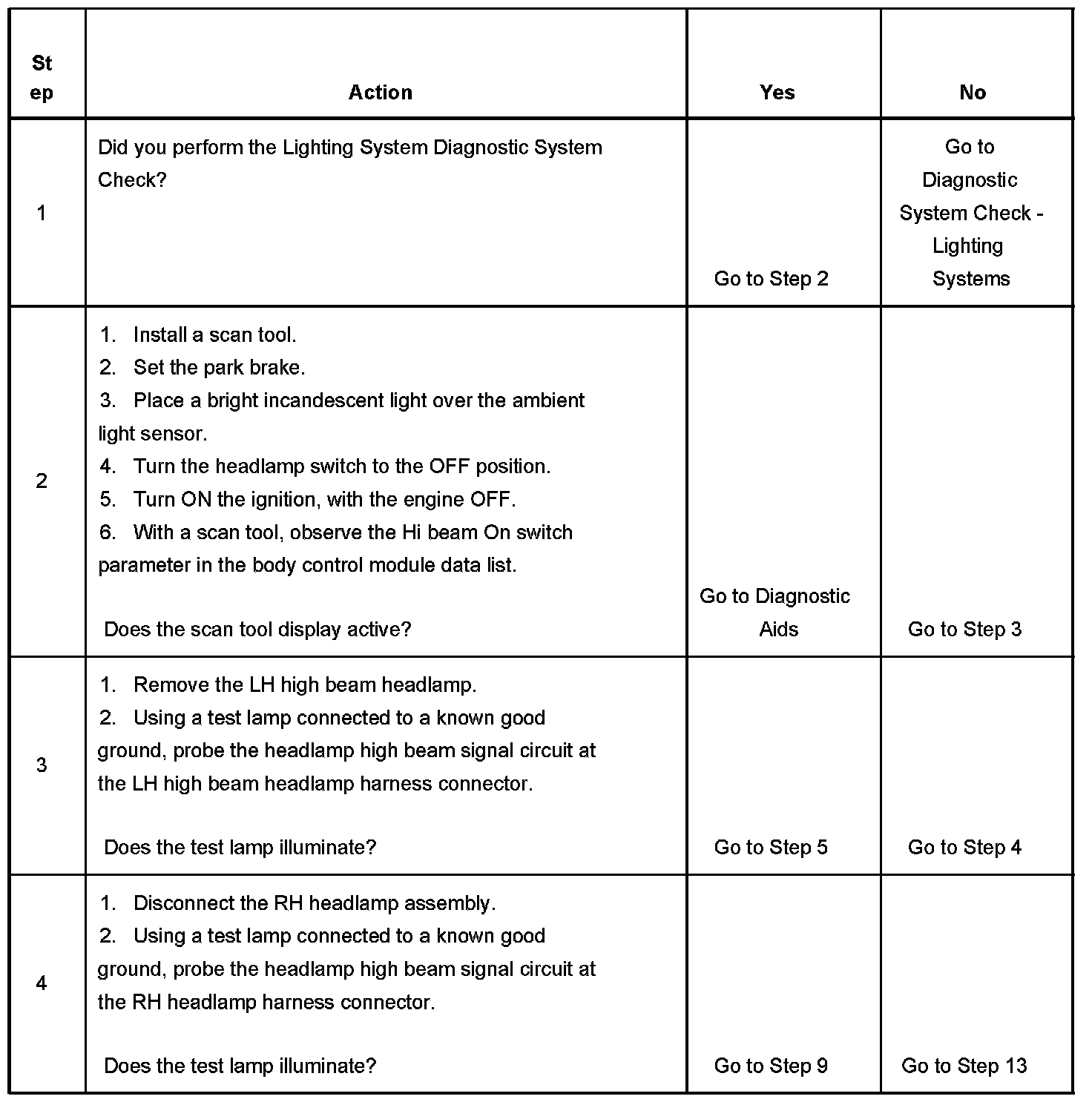 - An intermittent open in the headlamp high beam signal circuit.