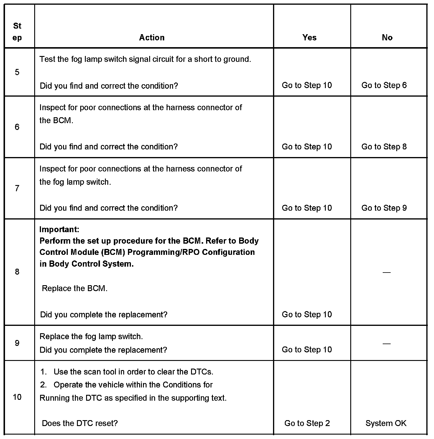 The BCM detects a short to ground in the fog lamp switch signal circuit for longer than 60 seconds.