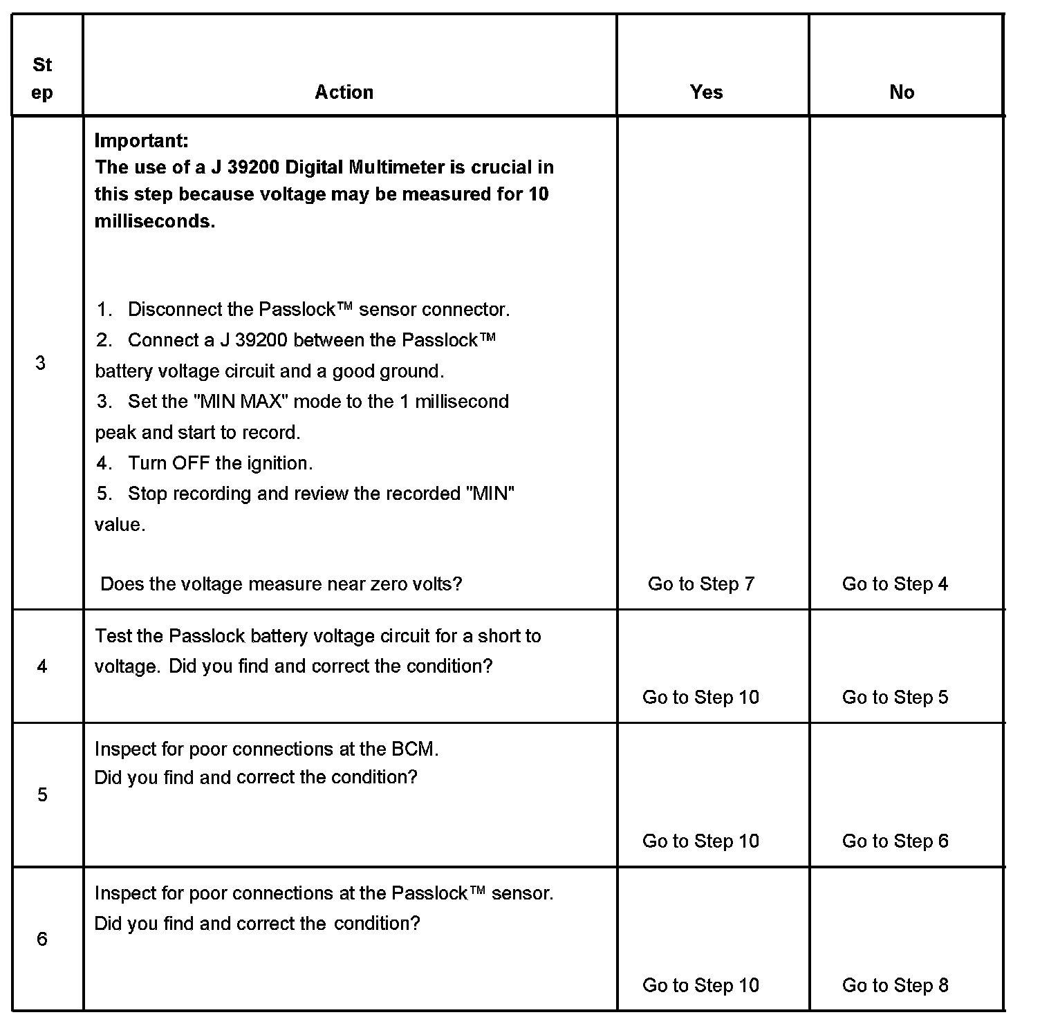 3. Tests for a short to battery positive on the Passlock battery voltage circuit.