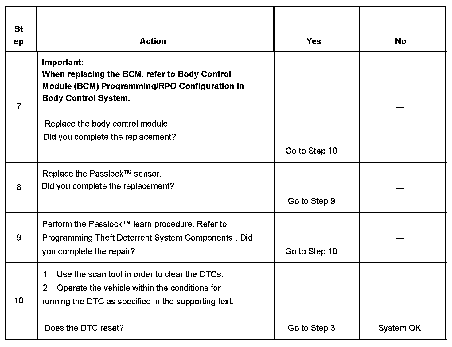 - When a short to battery is no longer present on the Passlock sensor power circuit, the ignition switch must be cycled from OFF to ON before this DTC can change from a current DTC to a history DTC.