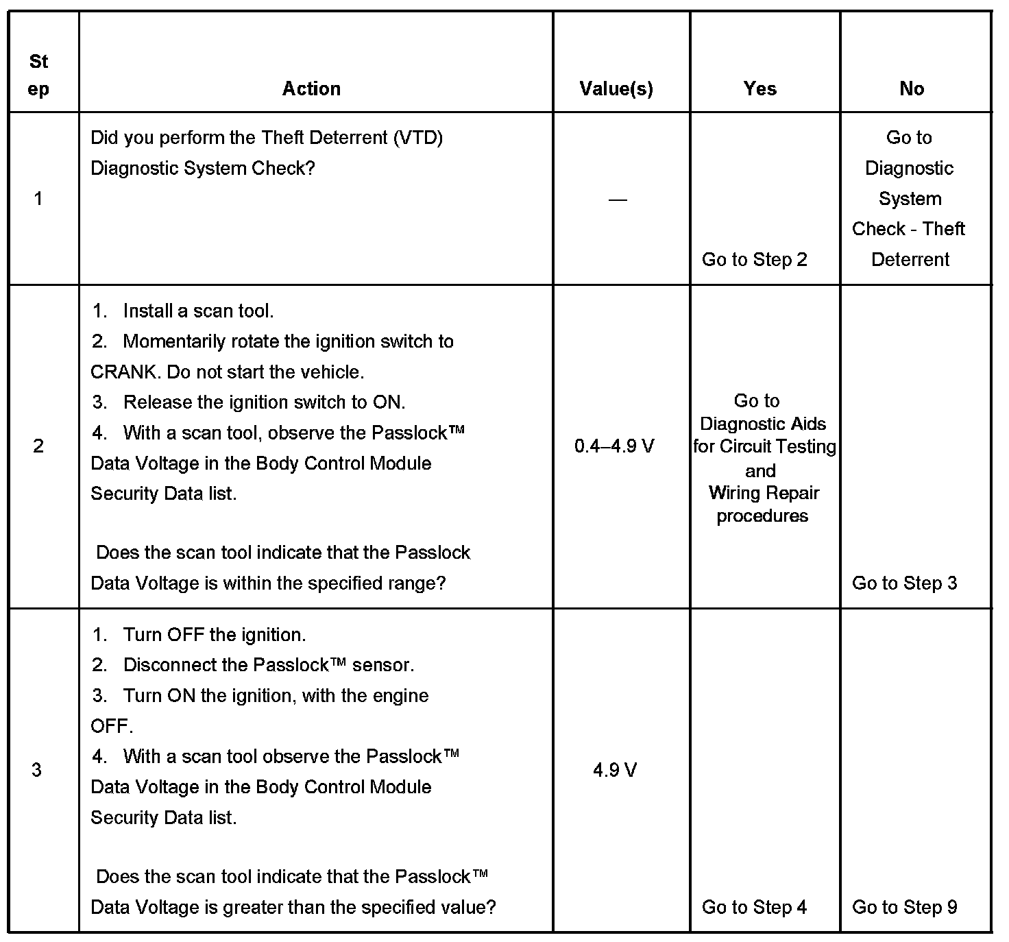 - Use a scan tool in order to inspect the Passlock(TM) data voltage and the Passlock(TM) code.