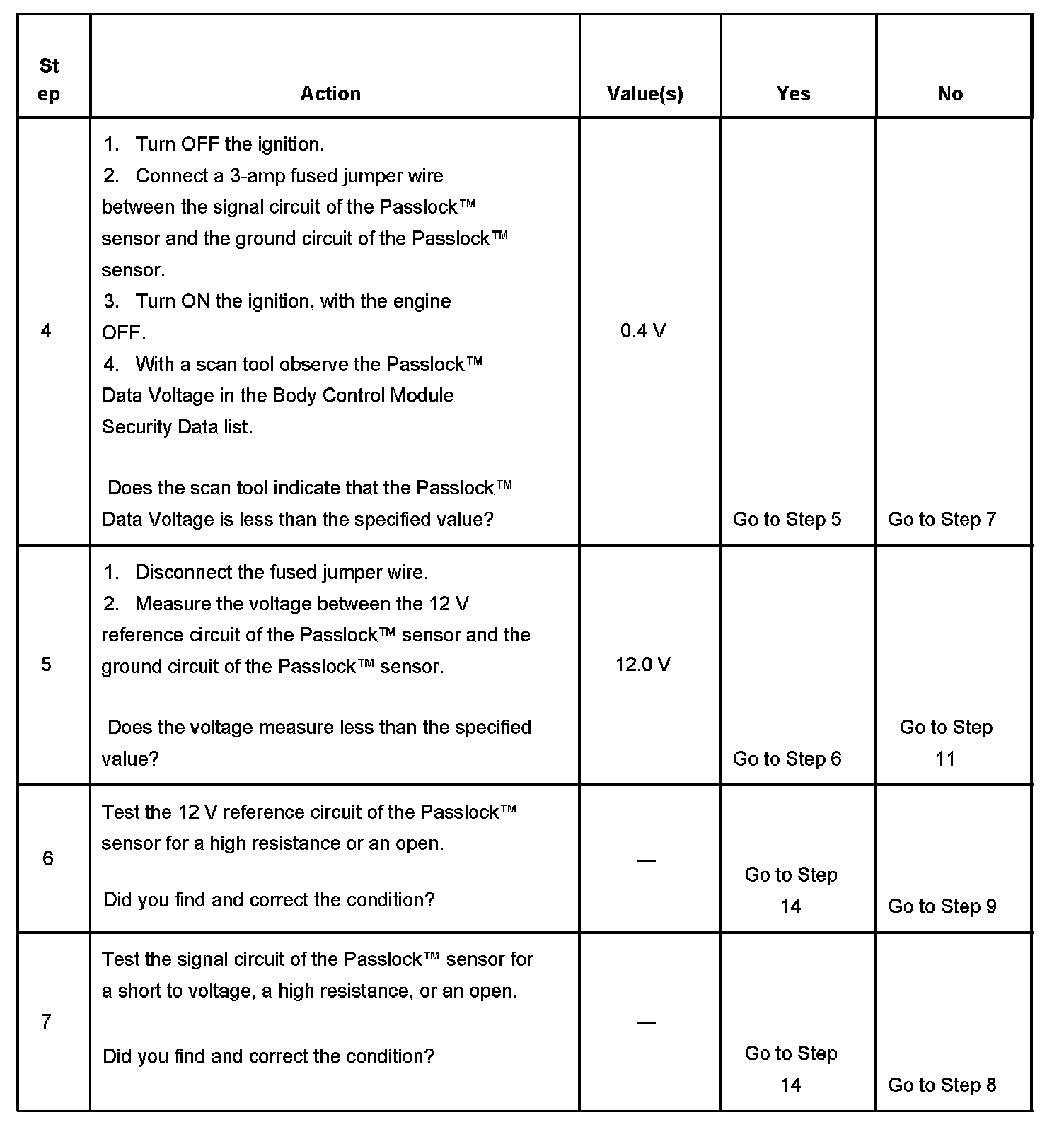 - Inspect the Passlock(TM) sensor harness for an intermittent or a short to battery.