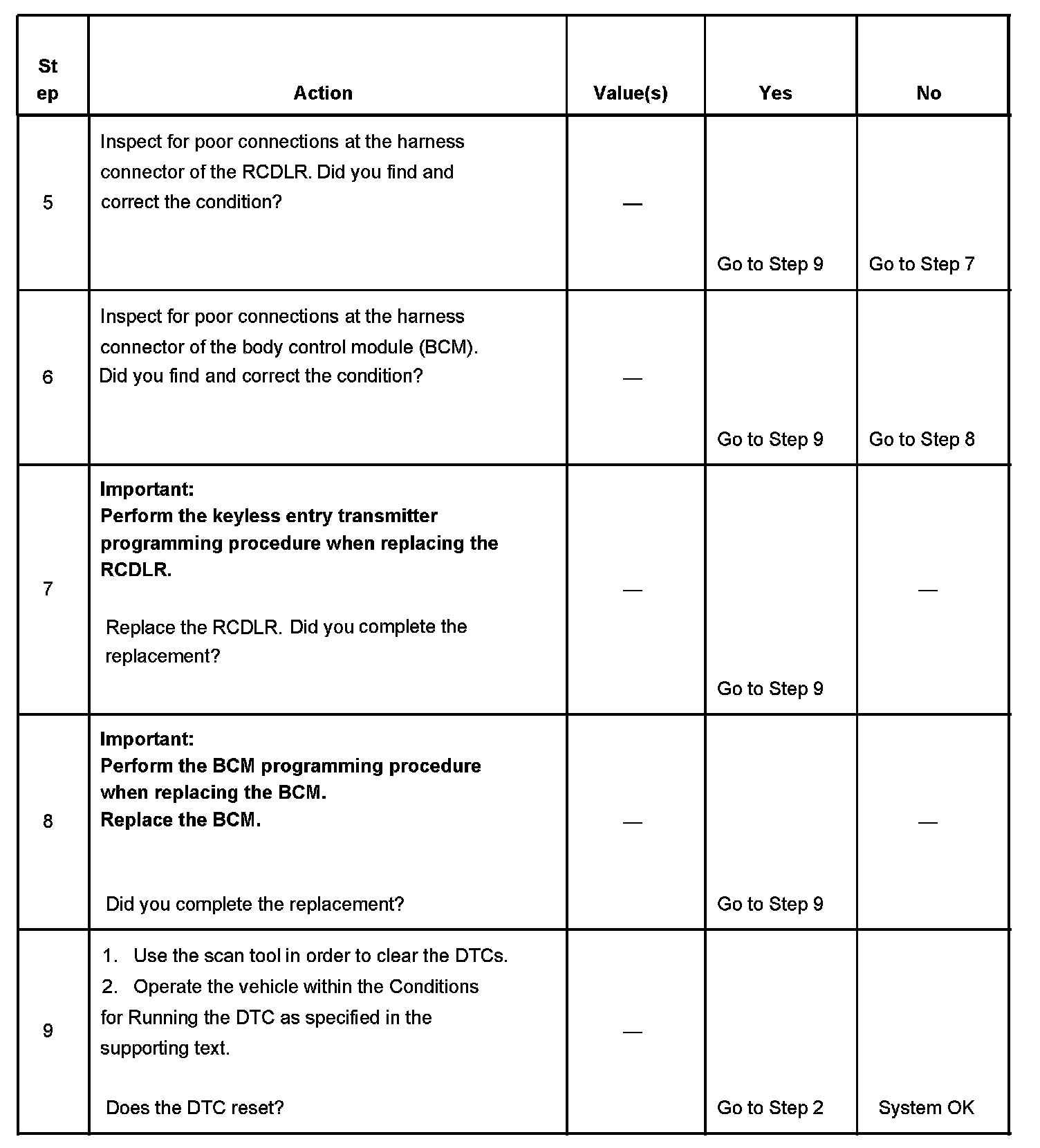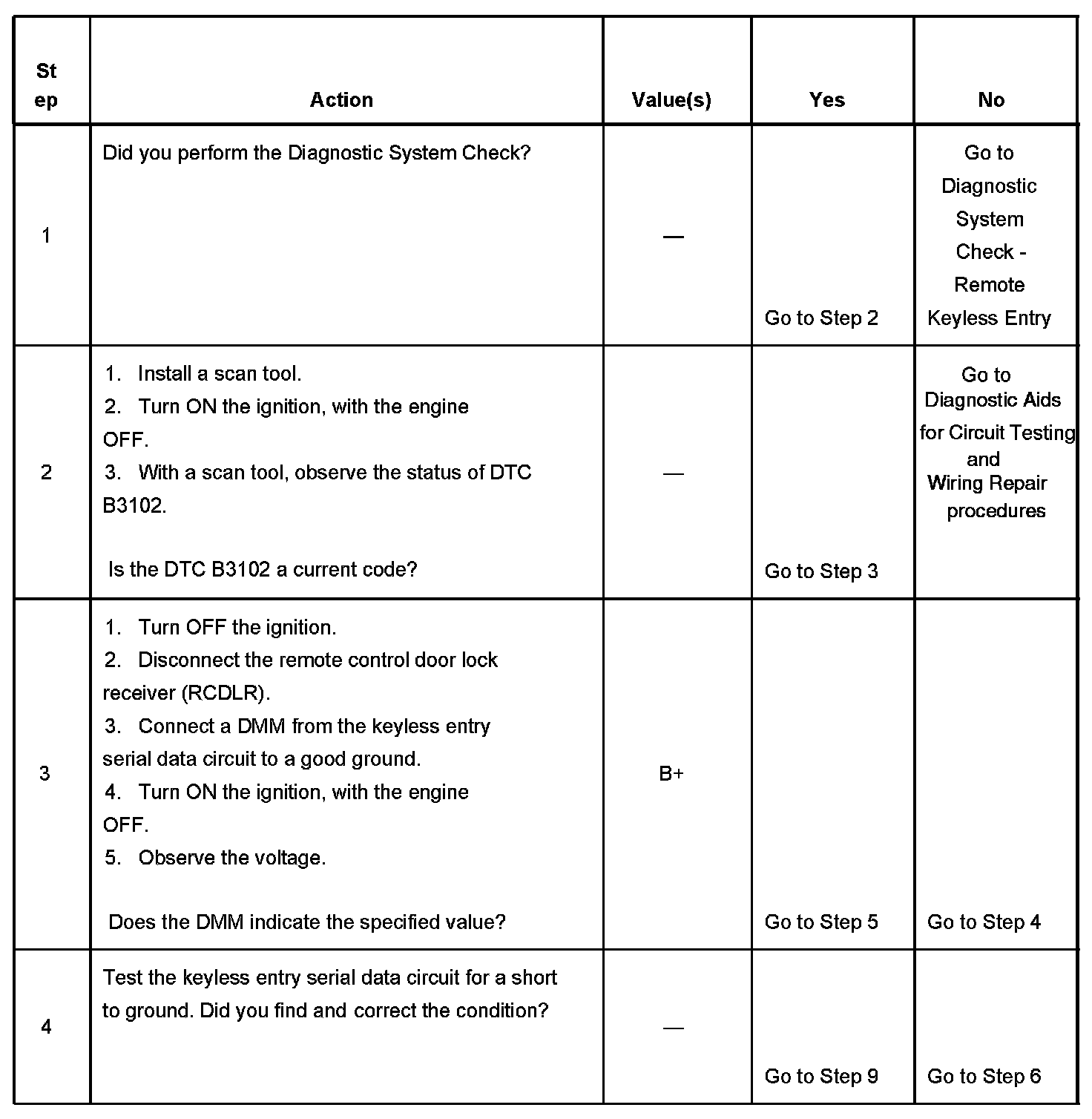3. This step checks the keyless entry serial data circuit for voltage supplied by the body control module (BCM).