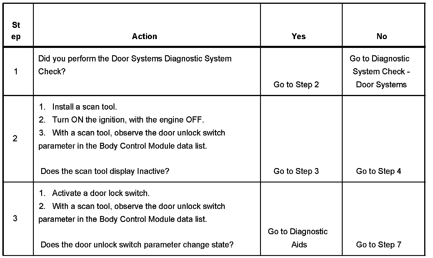 2. Tests to determine if the short to ground in the driver door lock switch unlock signal circuit is present.
