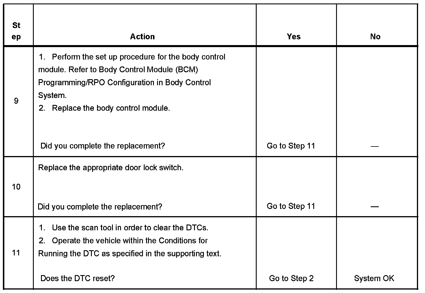 - A current DTC B3272 is cleared when the BCM no longer detects a short to ground in the driver door lock switch unlock signal circuit for greater than 60 seconds.