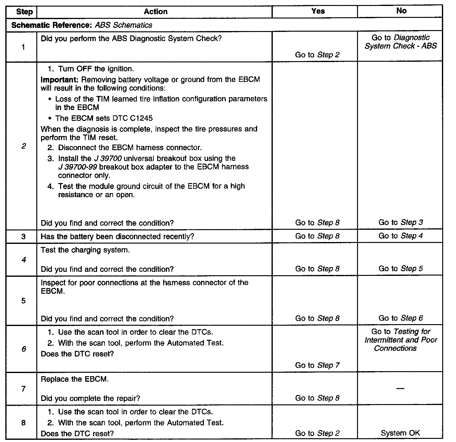 ^ The EBCM automatically clears the history DTC when a current DTC is not detected in 100 consecutive drive cycles.