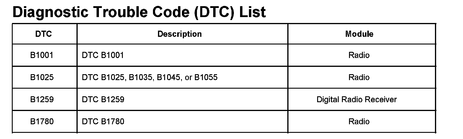 DTC's B1001-B1780: