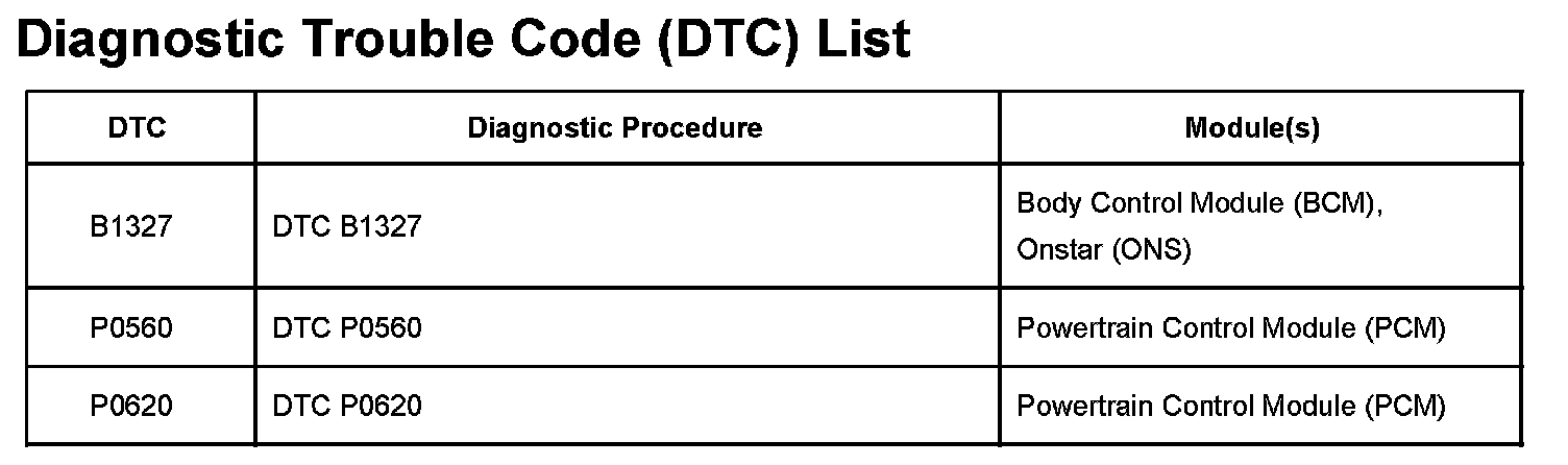 Diagnostic Trouble Code Descriptions