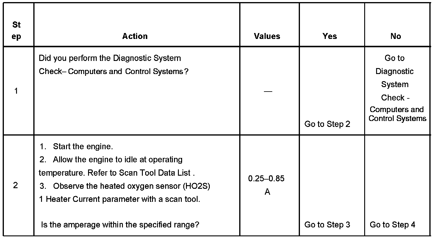 2. The HO2S 1 heater current is initially higher until the sensor reaches full operating temperature.