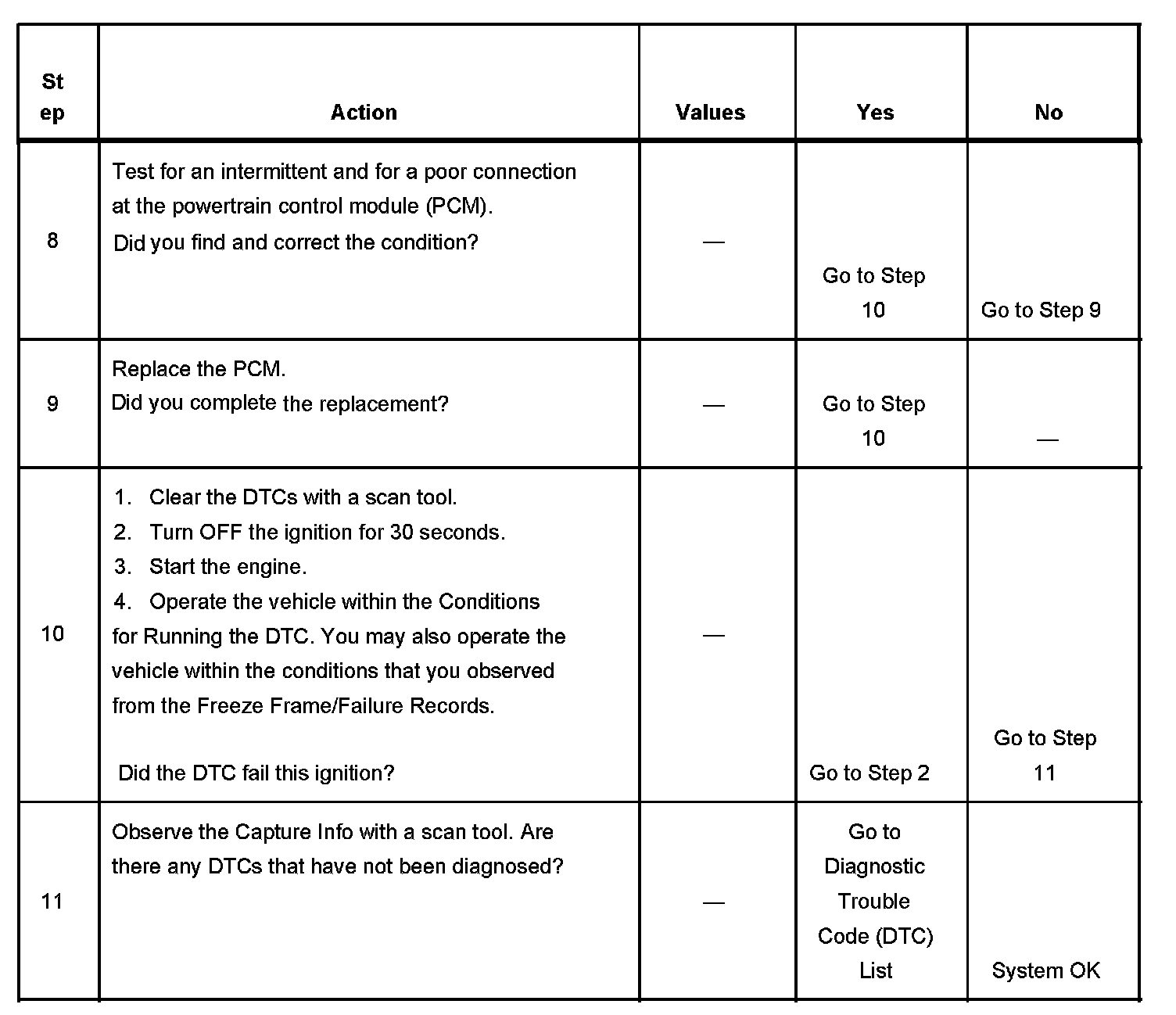 - A current DTC, Last Test Failed, clears when the diagnostic runs and passes.