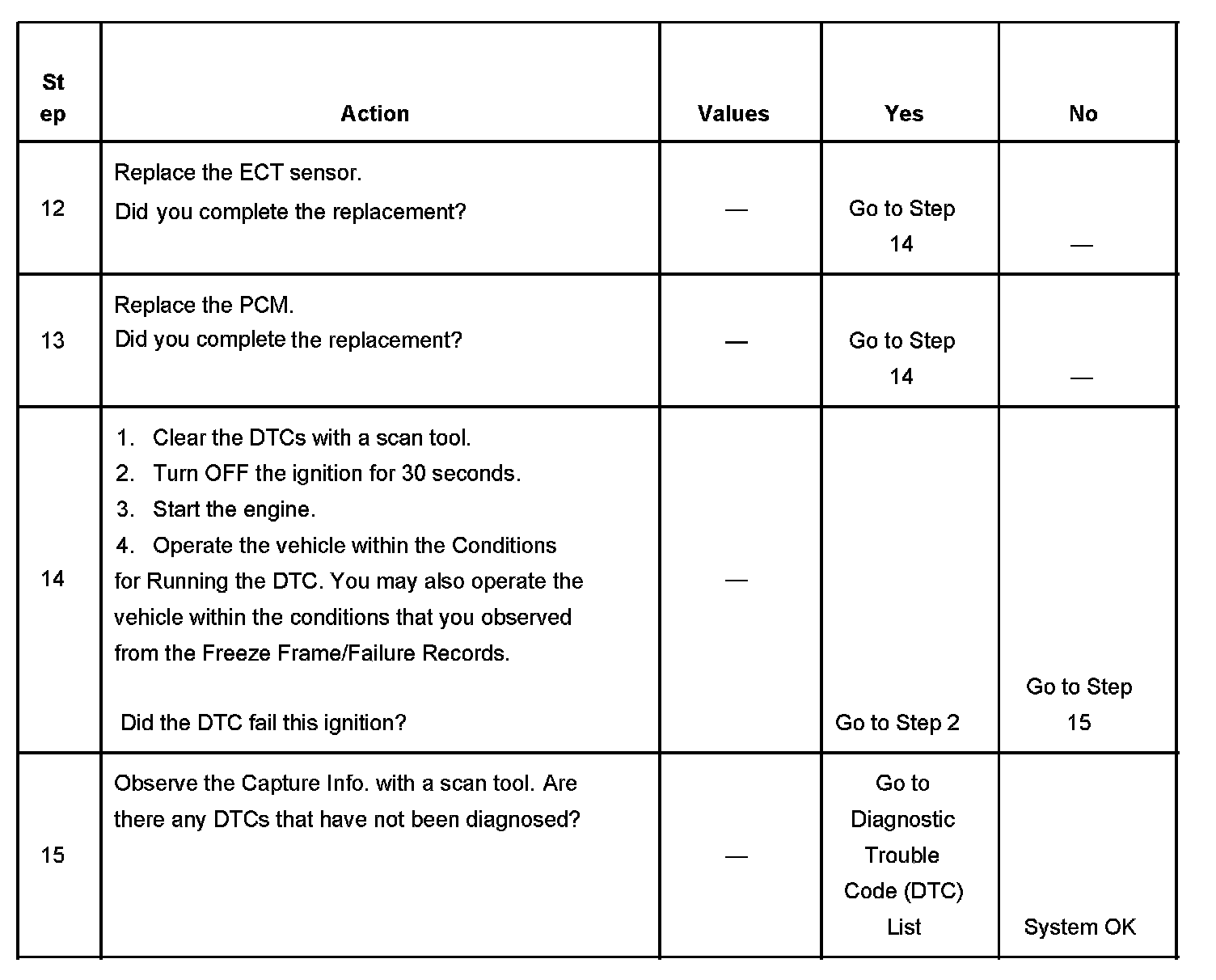 - A current DTC, Last Test Failed, clears when the diagnostic runs and passes.