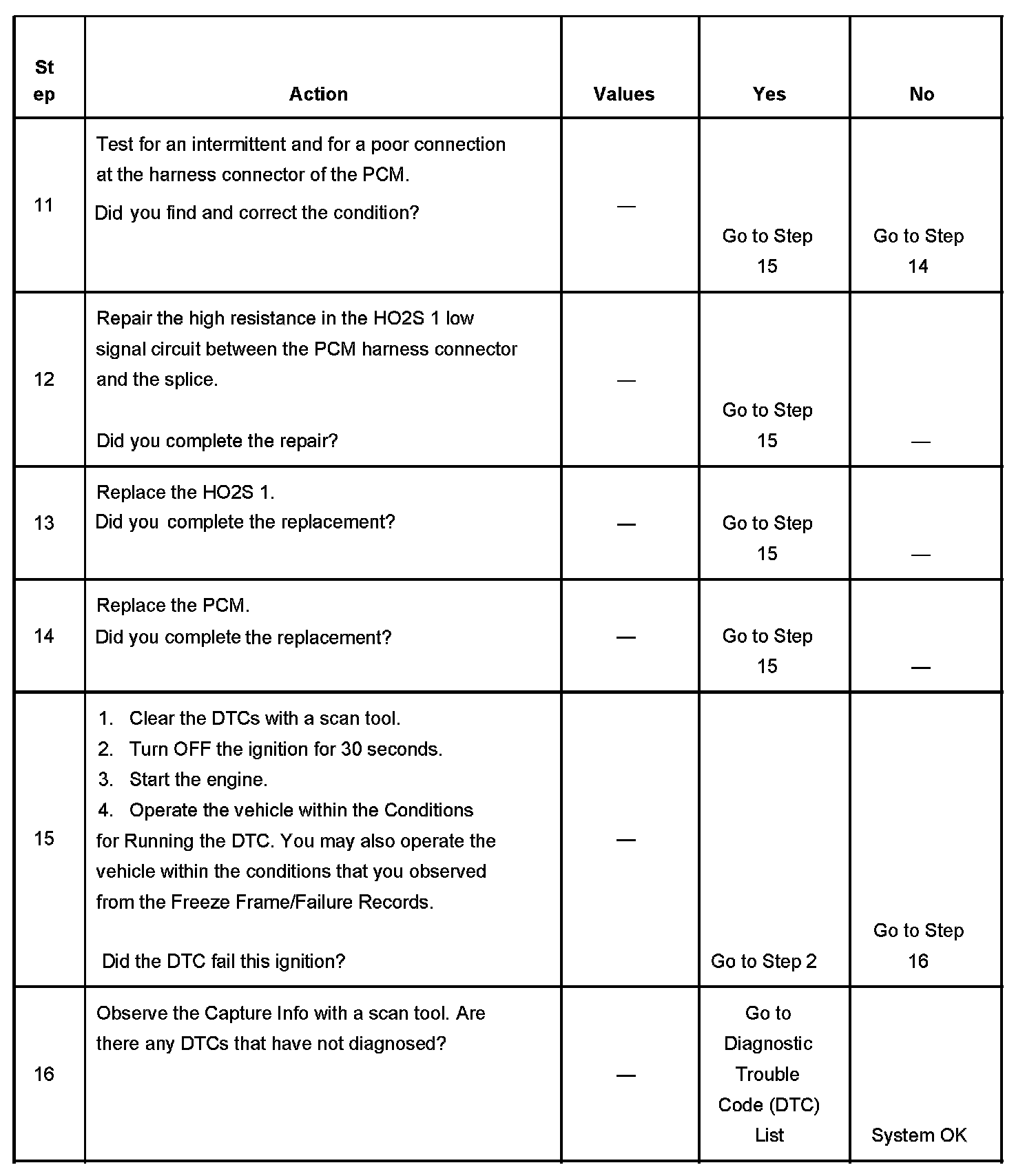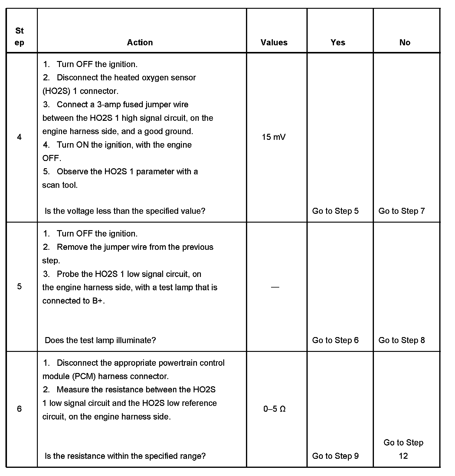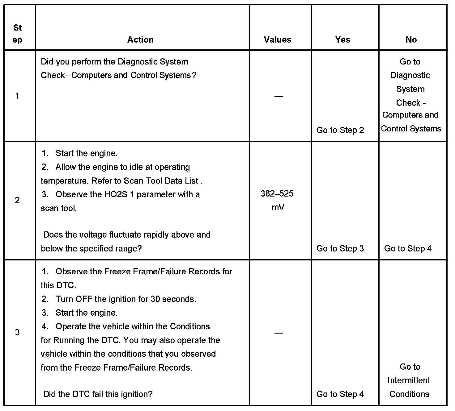 The PCM detects that the HO2S 1 signal voltage remains between 382-525 mV for more than 30 seconds.