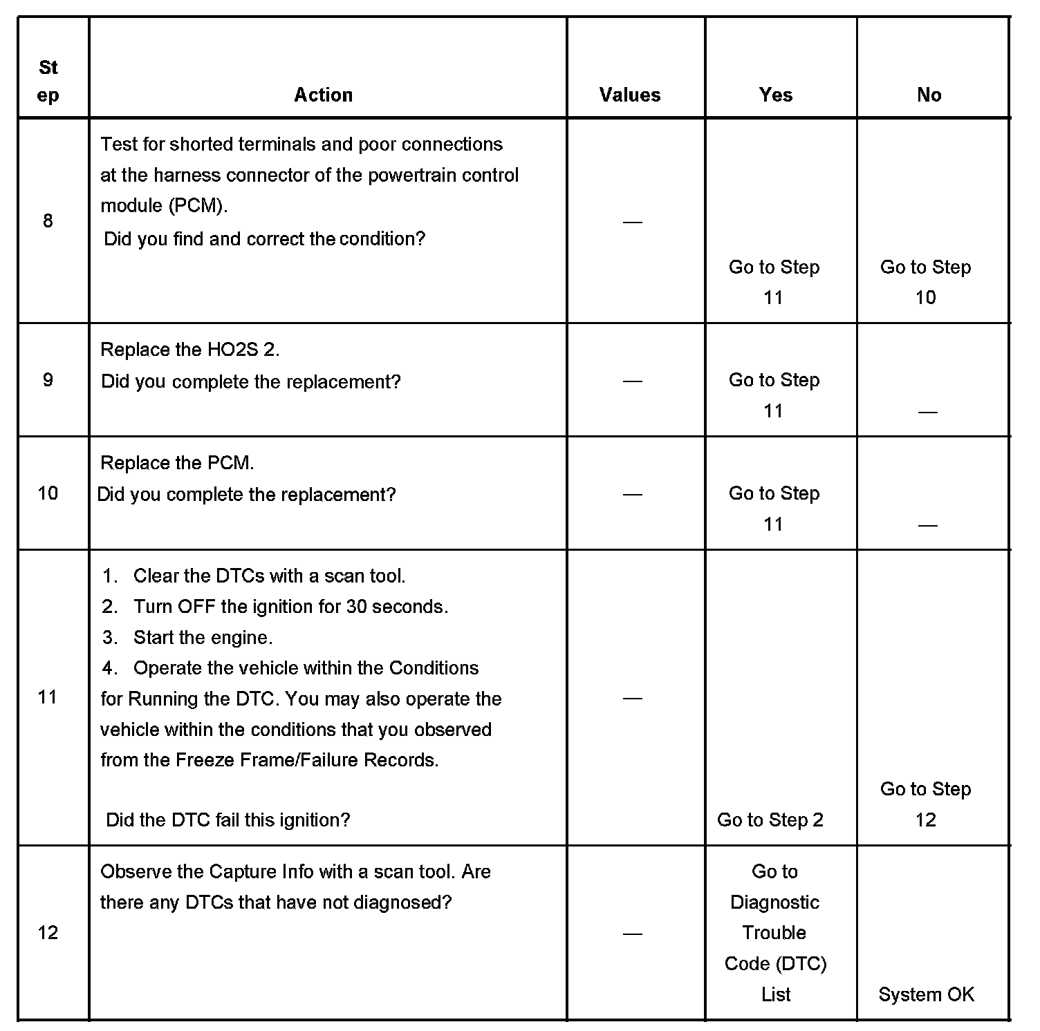 - A current DTC, Last Test Failed, clears when the diagnostic runs and passes.