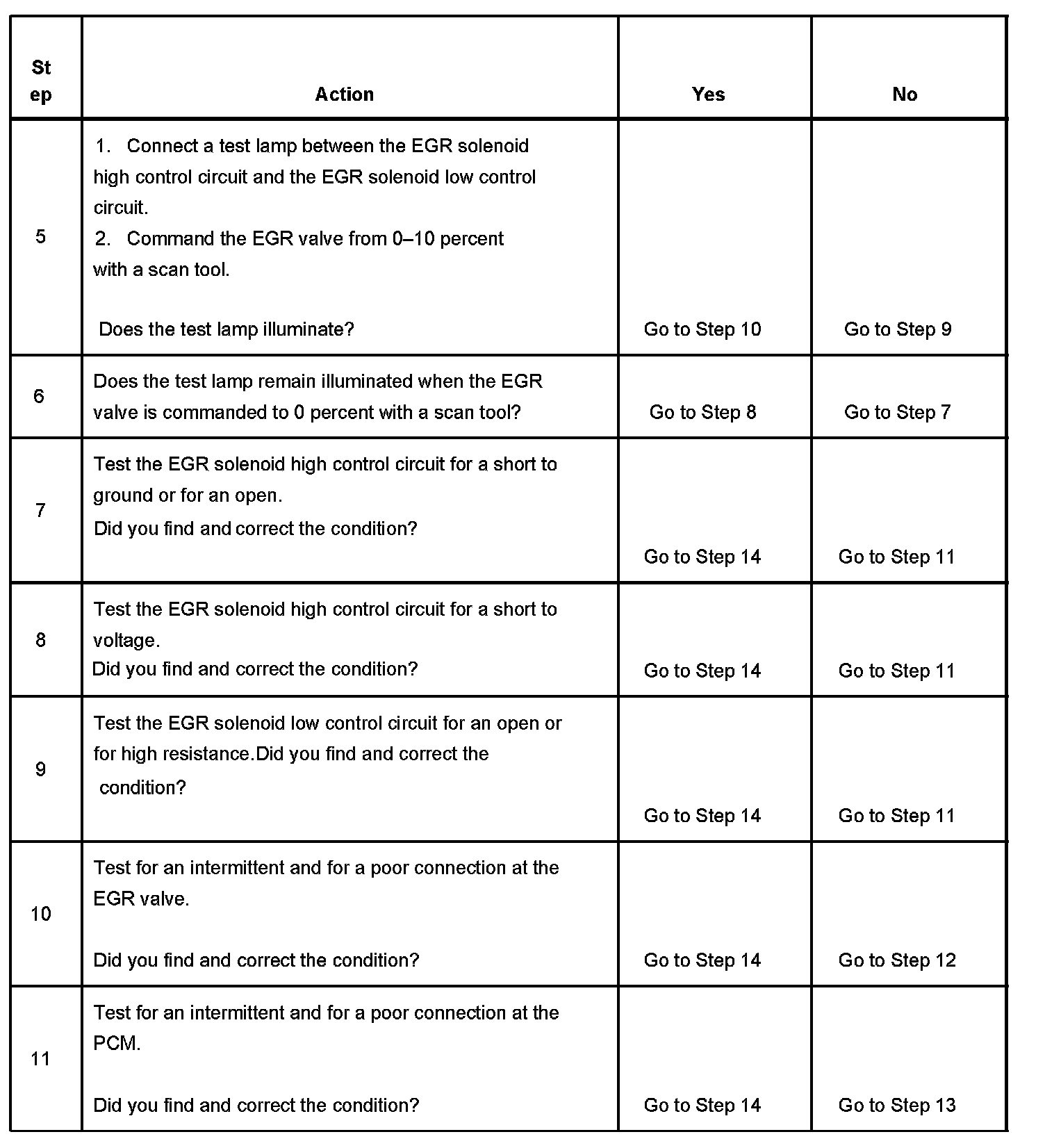 6. This step tests for voltage that is constantly being applied to the EGR valve.