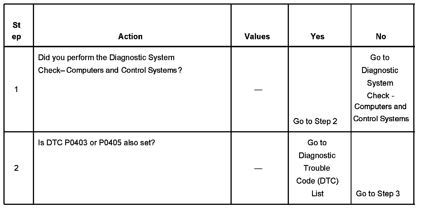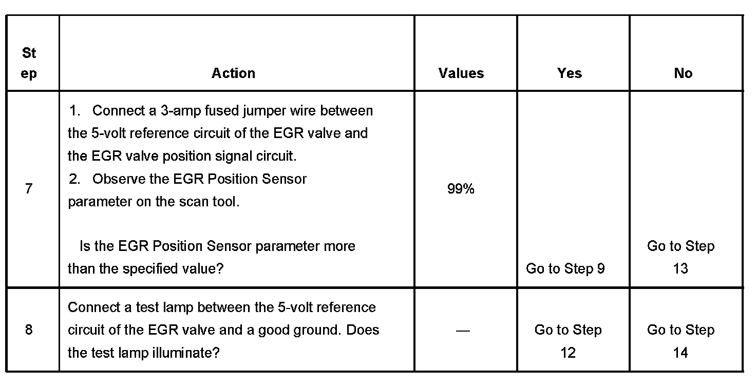 The exhaust gas recirculation (EGR) valve position sensor is monitored by the powertrain control module (PCM). The 5-volt reference circuit, low reference circuit and the EGR valve position signal circuit are used by the PCM to determine the EGR valve position. The PCM compares the EGR Position Sensor parameter with the Desired EGR Position parameter when the valve is commanded open or closed. If the PCM detects a calibrated difference between the EGR Position Sensor parameter and Desired EGR Position parameter for a calibrated amount of time, DTC P0404 sets.