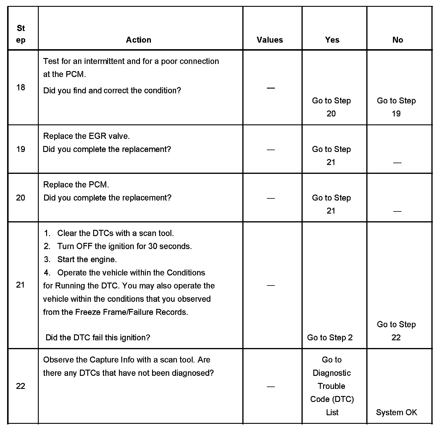 - A current DTC, Last Test Failed, clears when the diagnostic runs and passes.