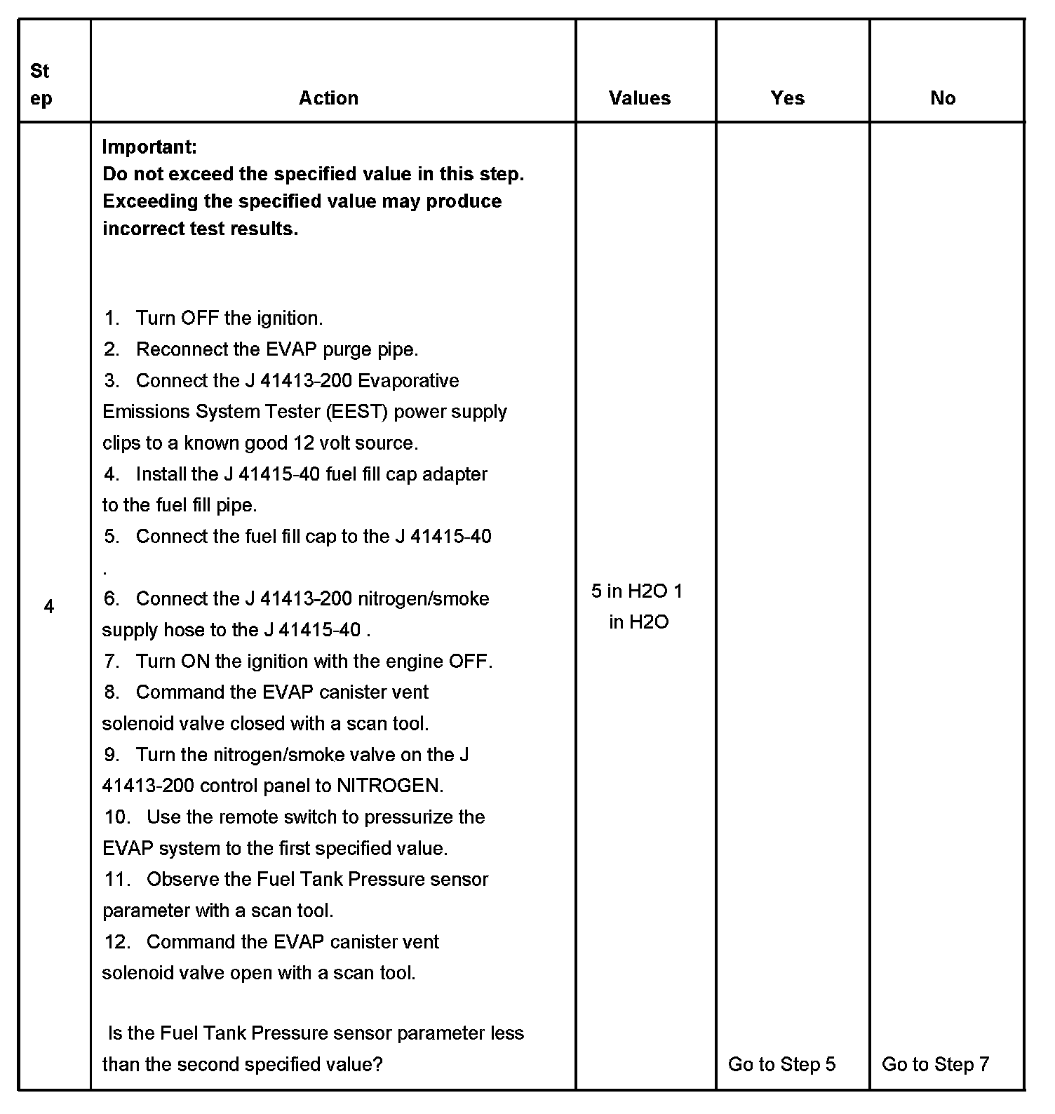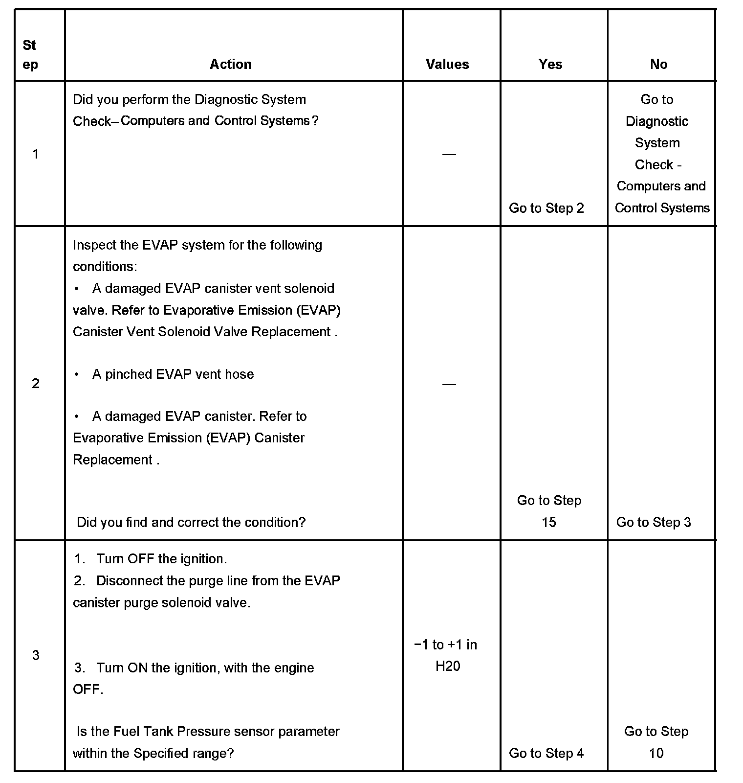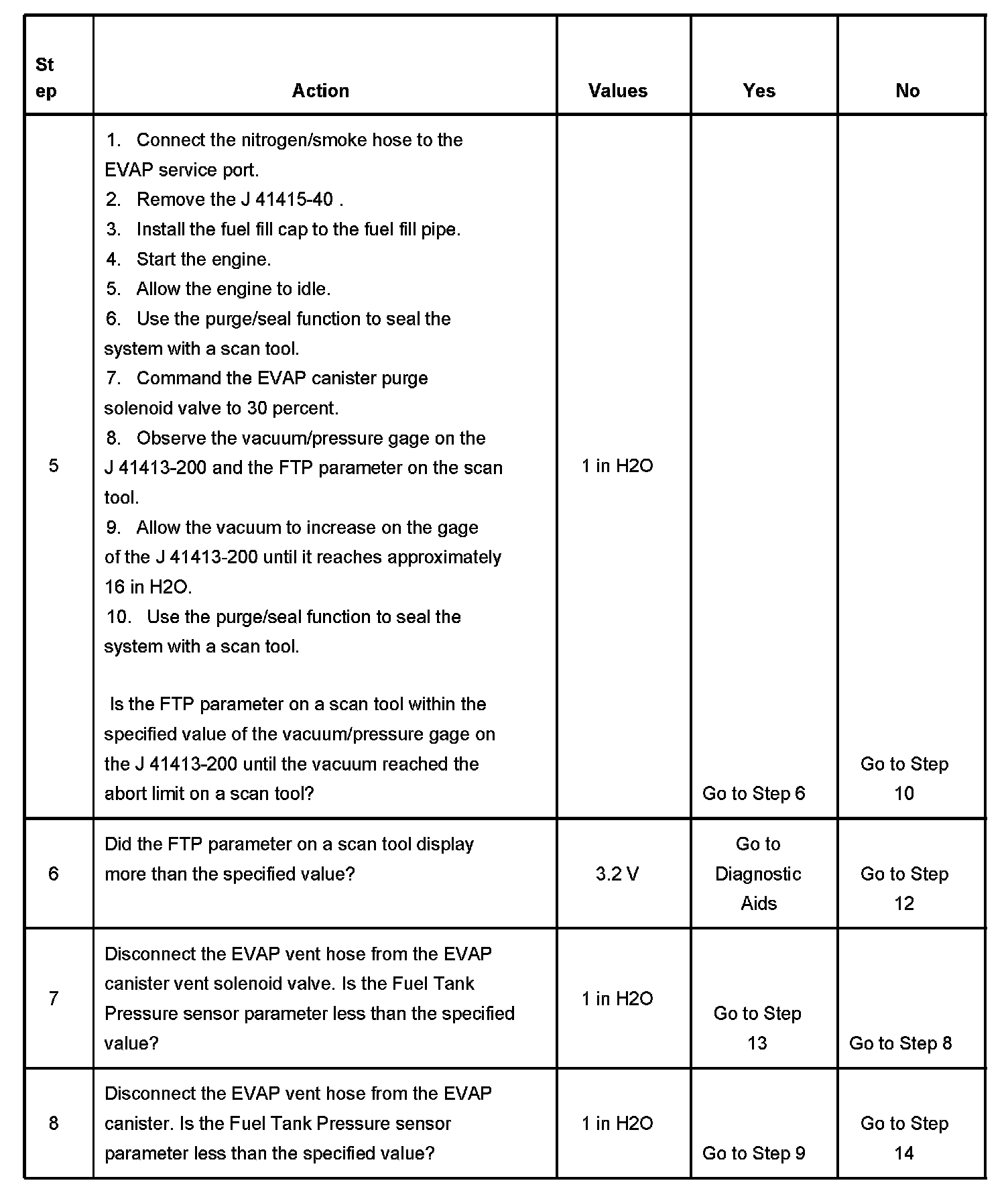- The Fuel Tank Pressure sensor is less than -10 inches H2O.