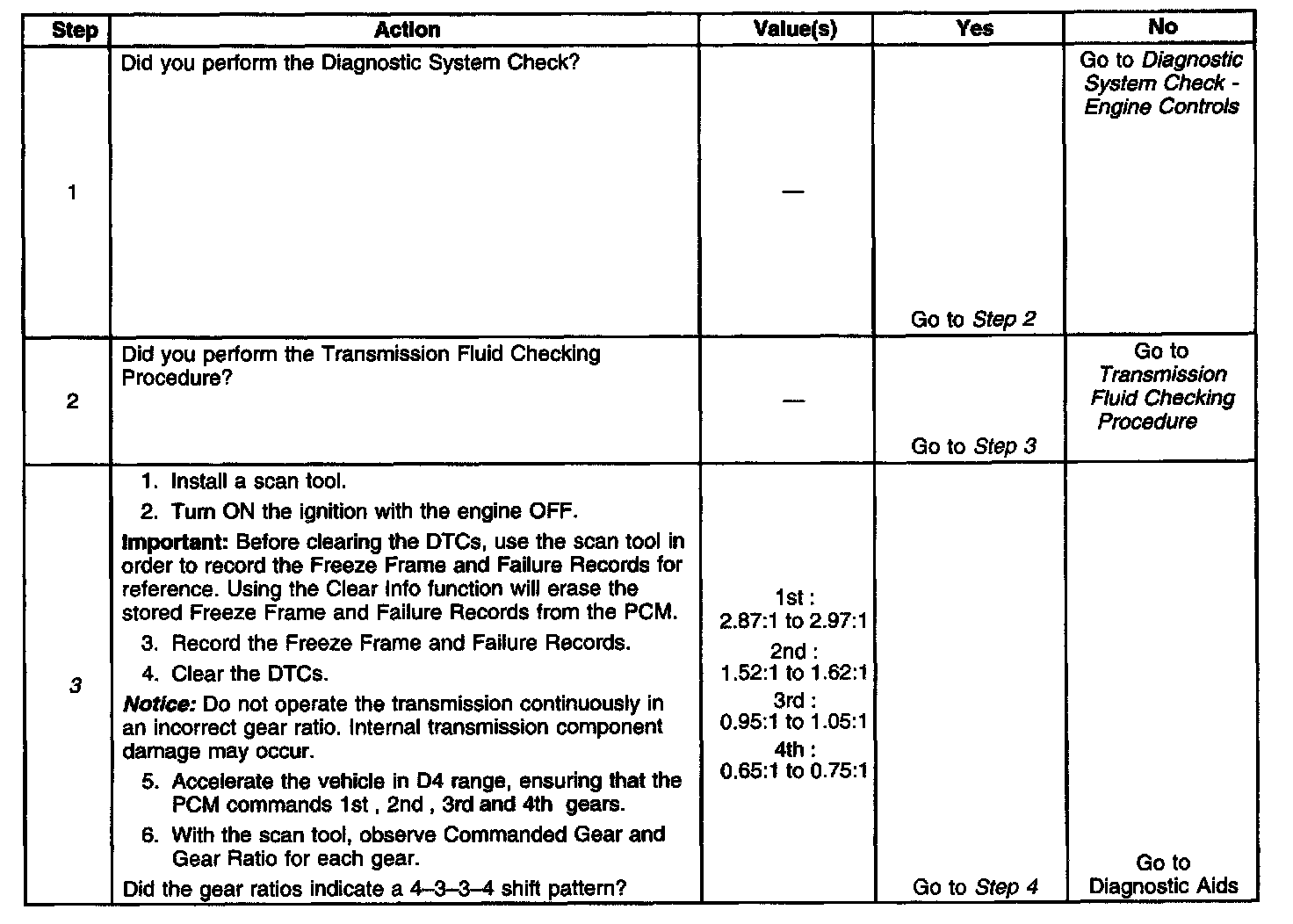 3. This step confirms that the PCM commanded all the shifts, but all the shifts did not occur.
