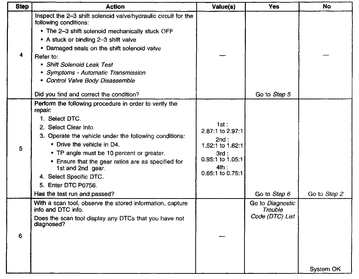 ^ No 2-3 SS valve electrical DTC P0758.