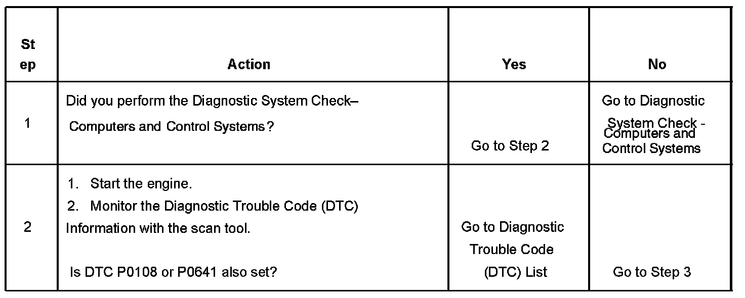 The MAP sensor responds to changes in intake manifold pressure which gives an indication of the engine load.The MAP sensor has a 5-volt reference circuit,a low reference circuit,and a signal circuit.The PCM supplies 5 volts to the MAP sensor on the 5-volt reference circuit and provides a ground on the low reference circuit.The MAP sensor provides a signal to the PCM on the MAP sensor signal circuit which is relative to the pressure changes in the manifold. With low MAP such as during idle or deceleration, the PCM should detect a low MAP sensor signal voltage.With high MAP such as WOT,the PCM should detect a high MAP sensor signal voltage. This MAP sensor will indicate pressure between 8-208 kPa.The MAP sensor is also used in order to calculate the BARO when the ignition switch is turned ON, with the engine OFF.The PCM monitors the MAP sensor signal for voltage outside of the normal range.If the PCM detects a MAP sensor signal voltage that is intermittently high, DTC P1106 sets.