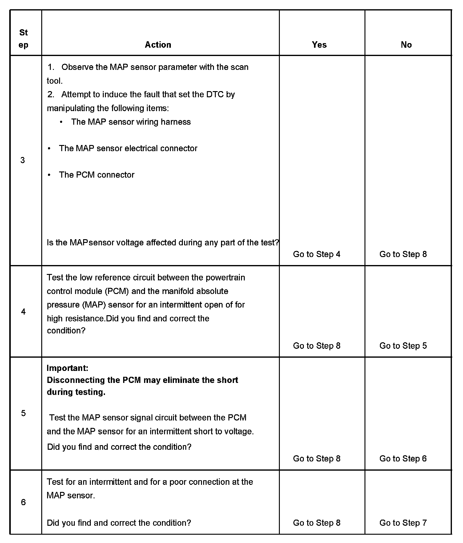 The numbers below refer to the step numbers on the diagnostic table.