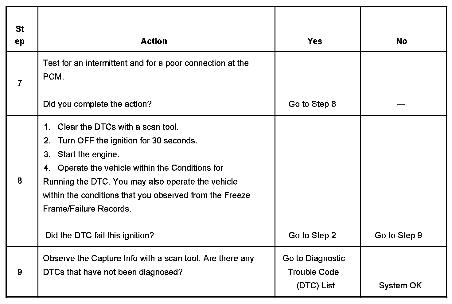 - A current DTC Last Test Failed clears when the diagnostic runs and passes.