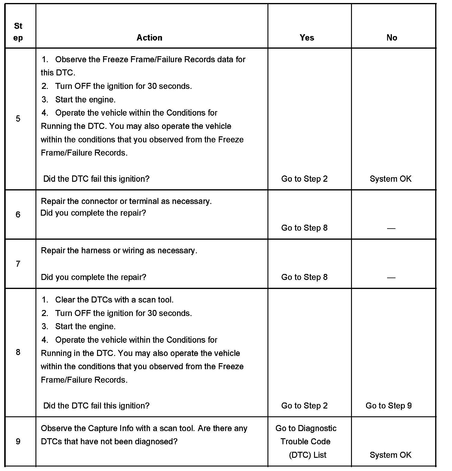 - A current DTC Last Test Failed clears when the diagnostic runs and passes.