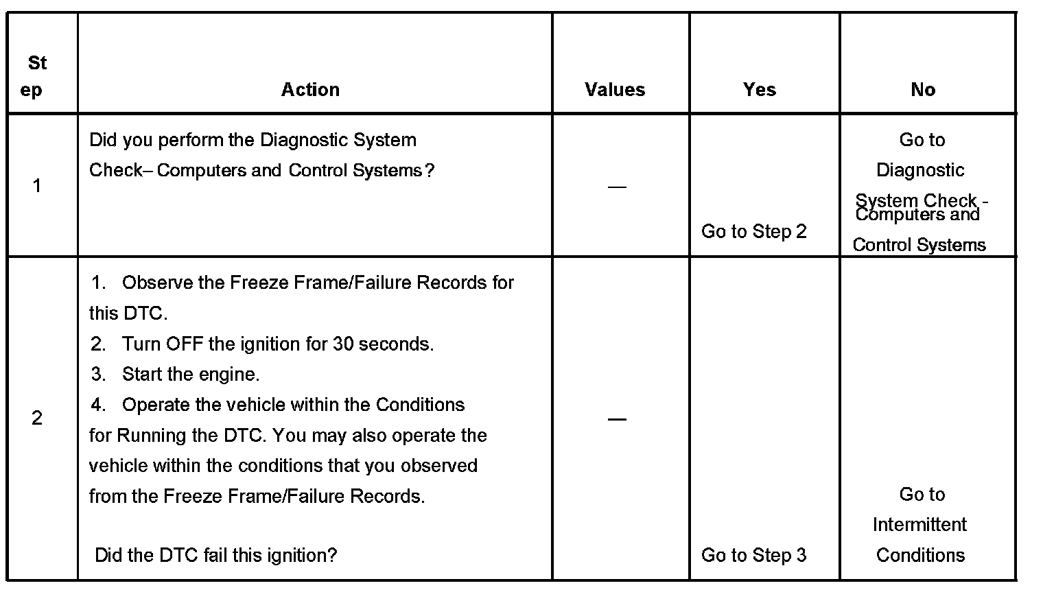- If the condition is intermittent, refer to Intermittent Conditions. Diagnostic Strategies