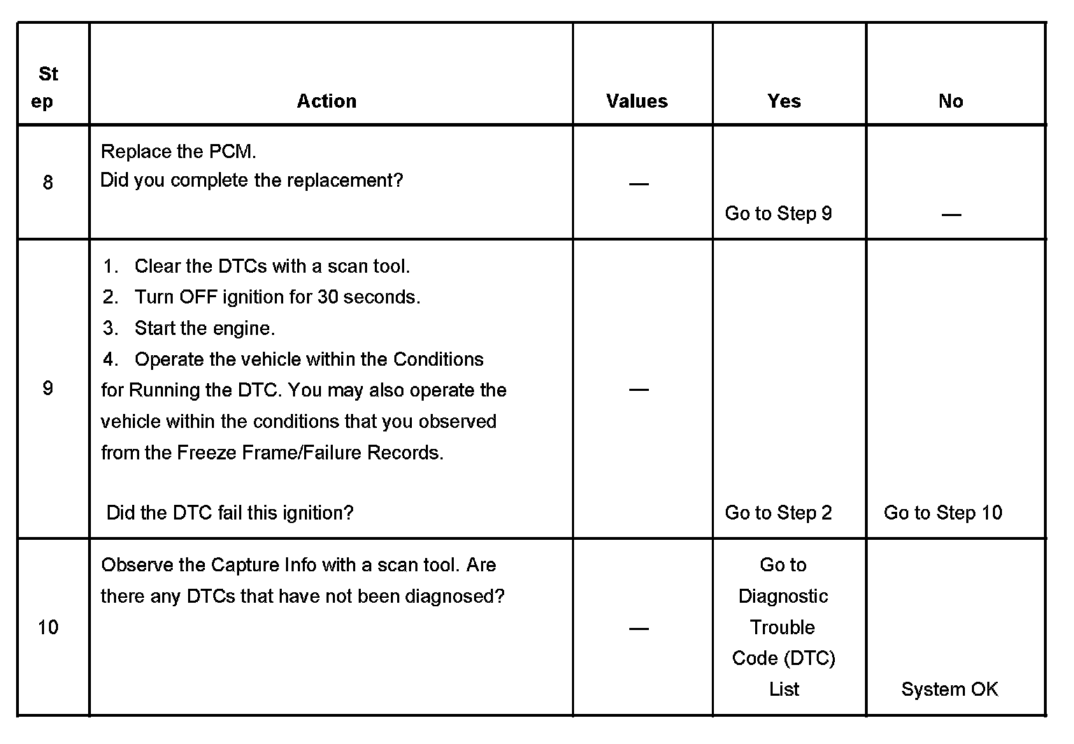 - A current DTC, Last Test Failed, clears when the diagnostic runs and passes.