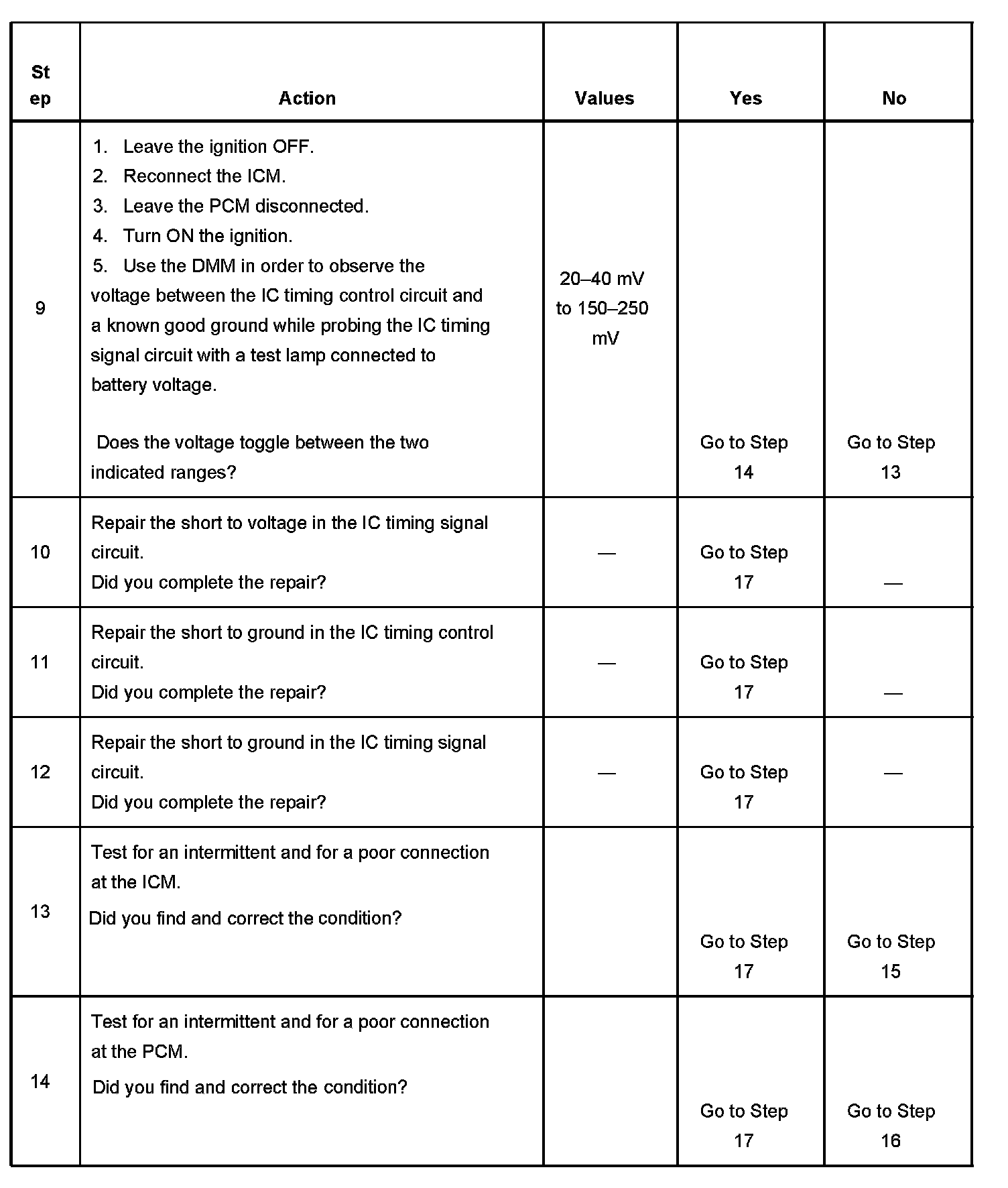 The PCM detects a short to voltage in the IC timing signal circuit.
