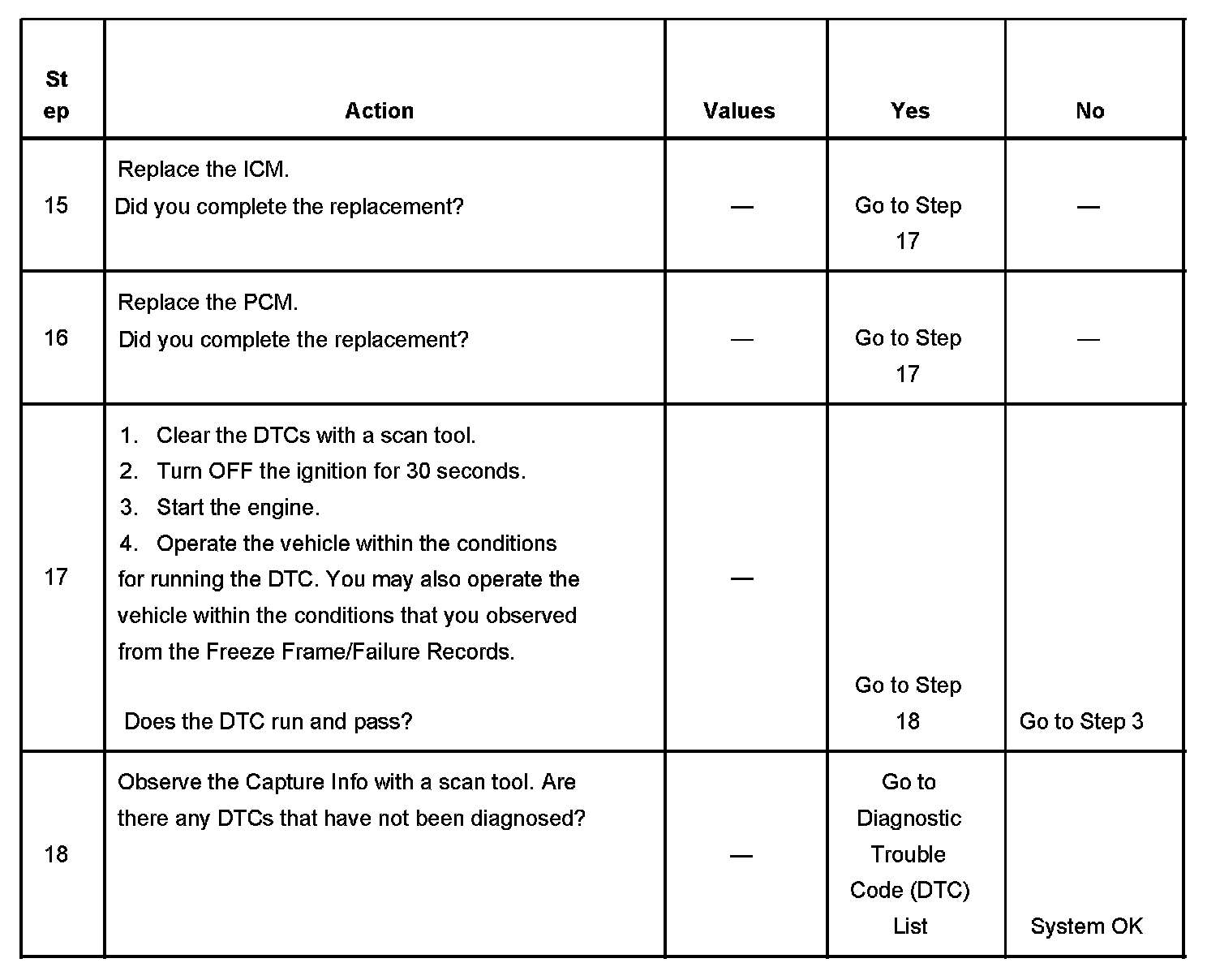 - A current DTC, Last Test Failed, clears when the diagnostic runs and passes.