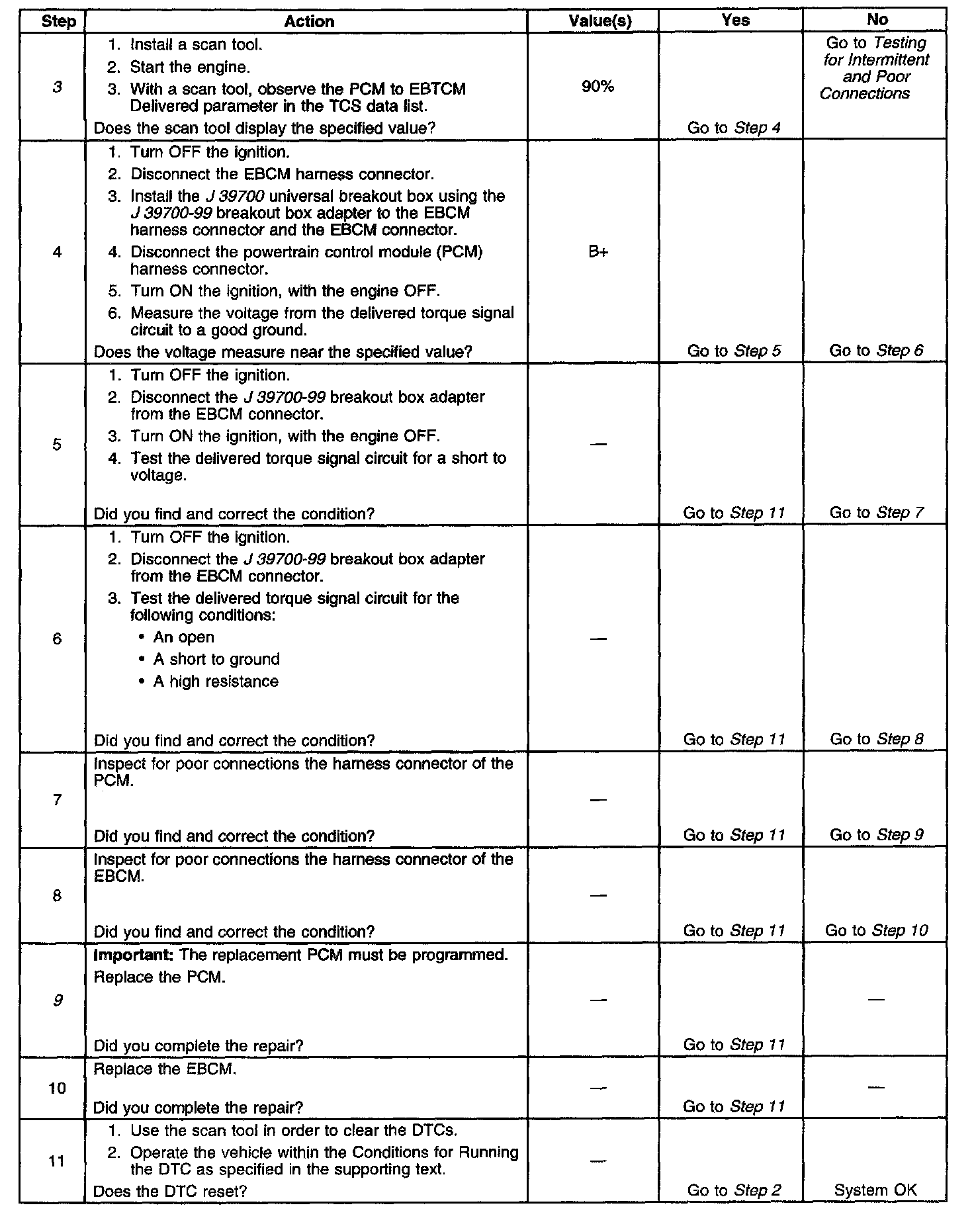 When certain PCM DTCs are set, the PCM will not be able to perform the torque reduction portion of traction control. A serial data message is sent to the EBCM indicating that traction control is not allowed.