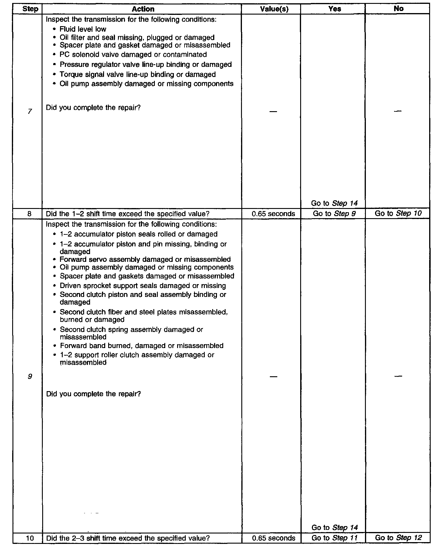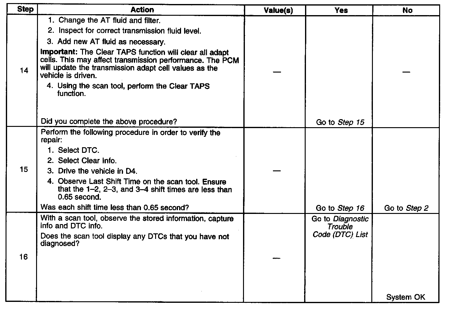 13. This step inspects or repairs components that may cause a maximum adapt and long 3-4 upshift.