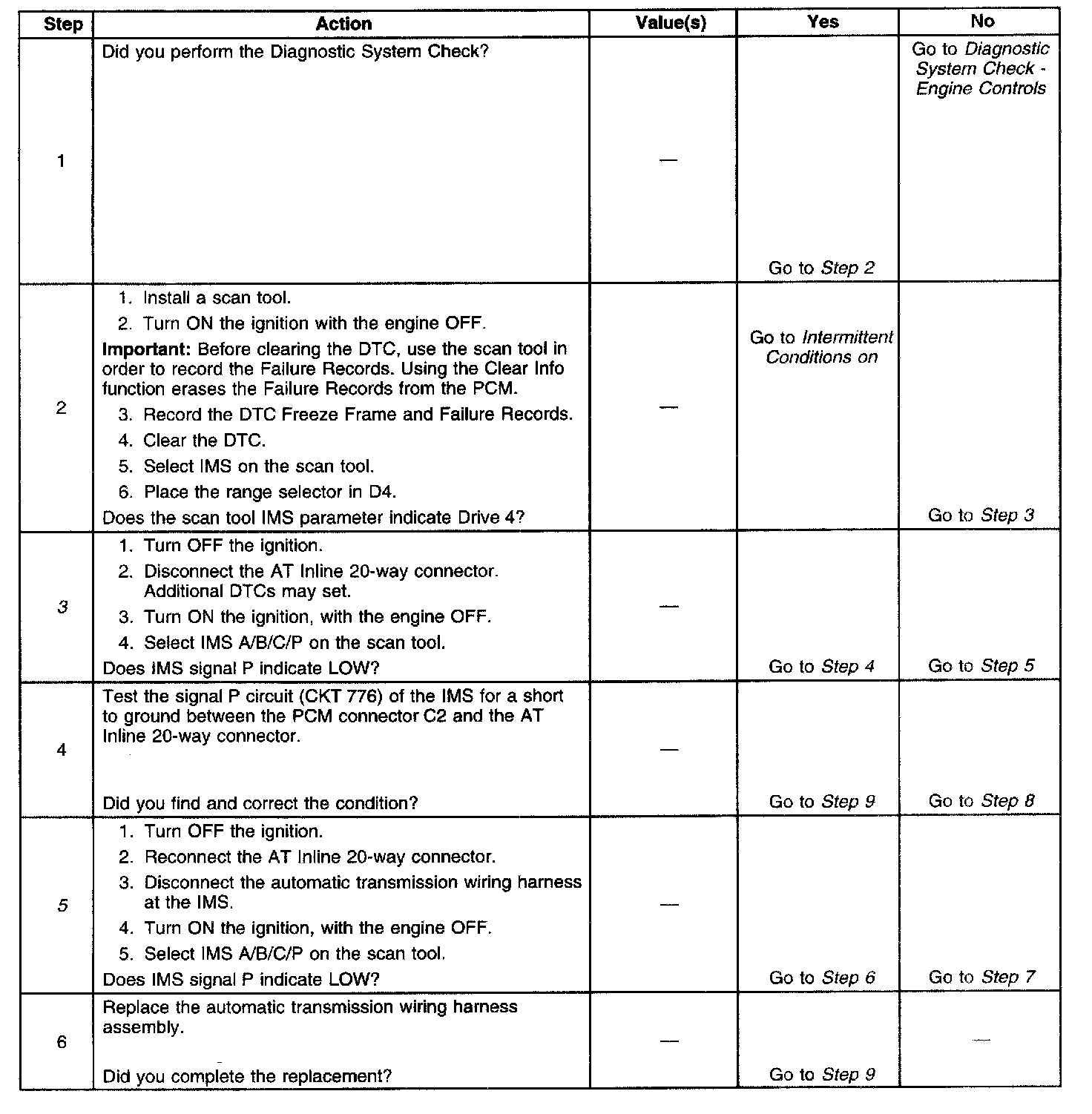 The transmission Internal Mode Switch (IMS) is a sliding contact switch attached to the selector detent inside the transmission side cover. The four inputs to the PCM indicate the position of the transmission range selector. The input voltage level at the PCM is high, B+, when the IMS is open and low when the switch is closed to ground. The four input parameters represented are Signals A, B, C and P - Parity.