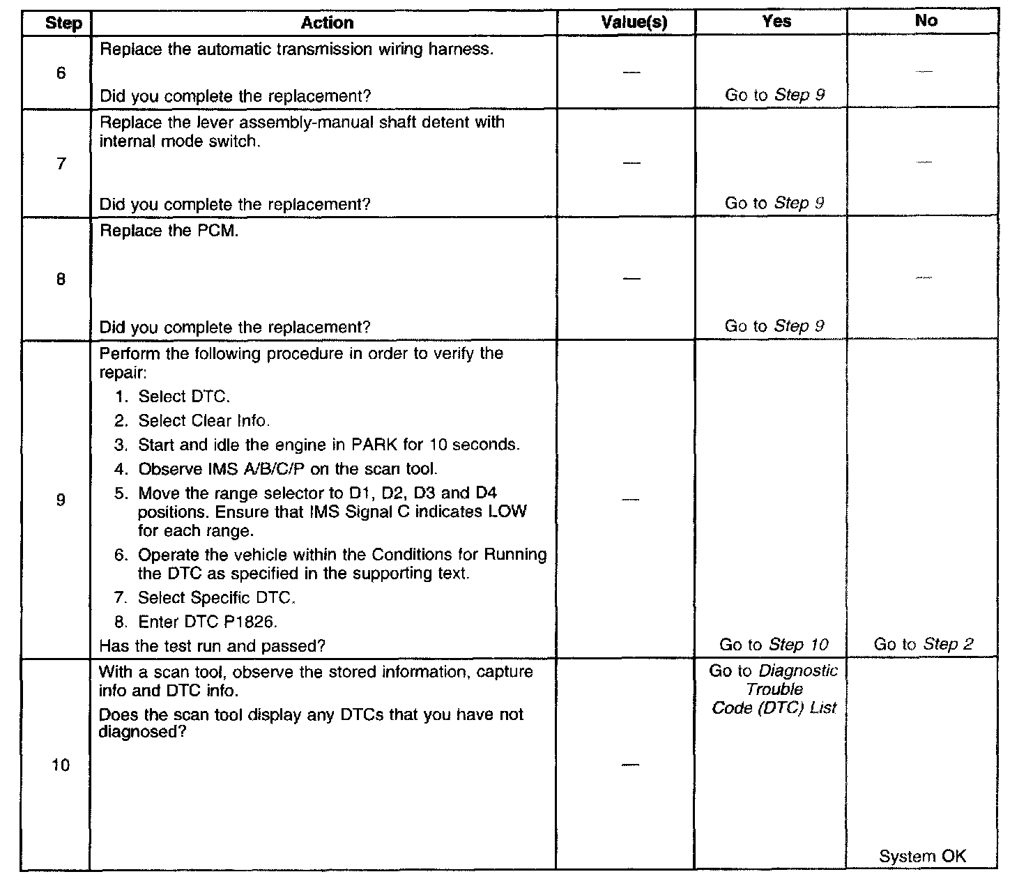 If the PCM detects that IMS Signal C is high while the vehicle is being driven in a forward gear, then DTC P1826 sets. DTC P1826is a type C DTC.