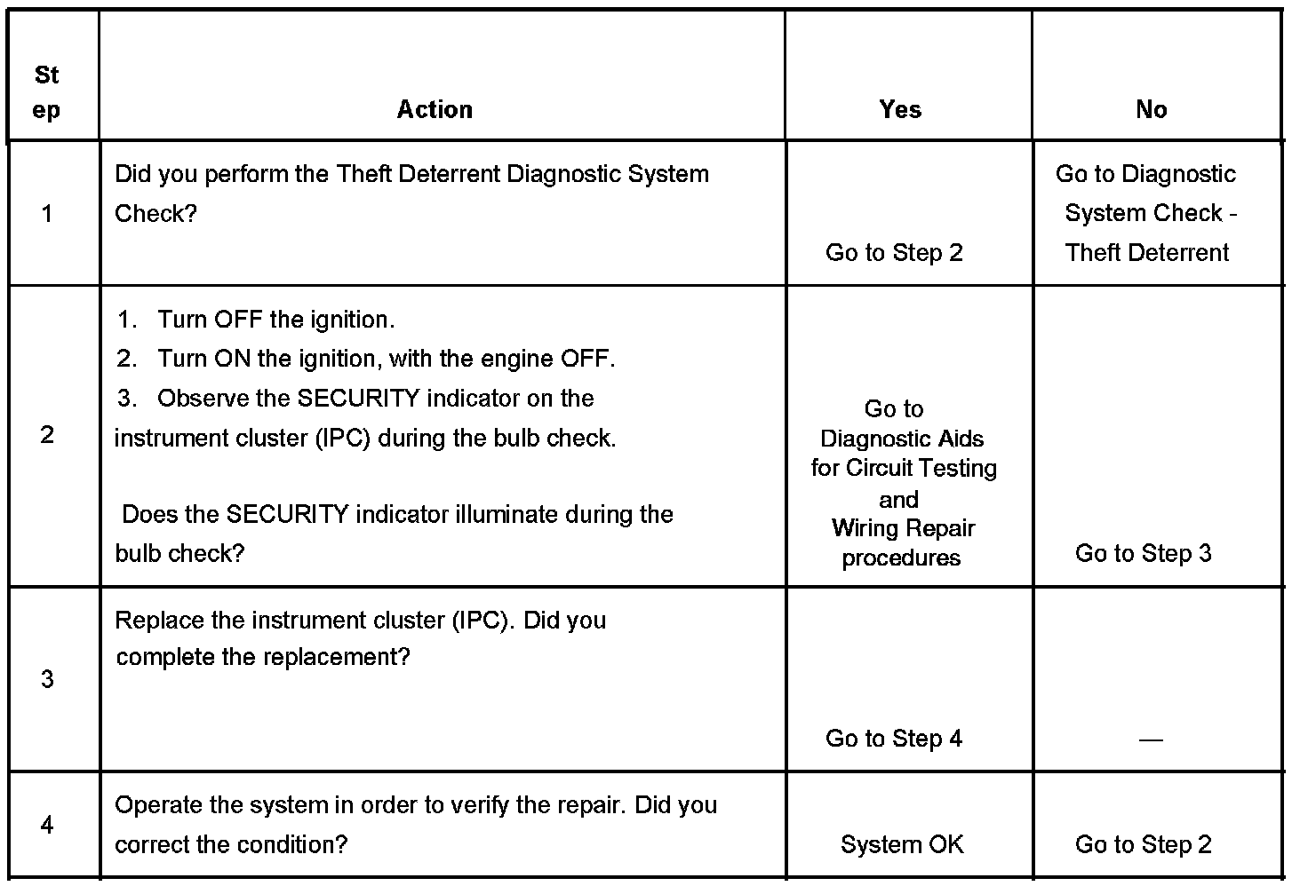 SECURITY Indicator Inoperative