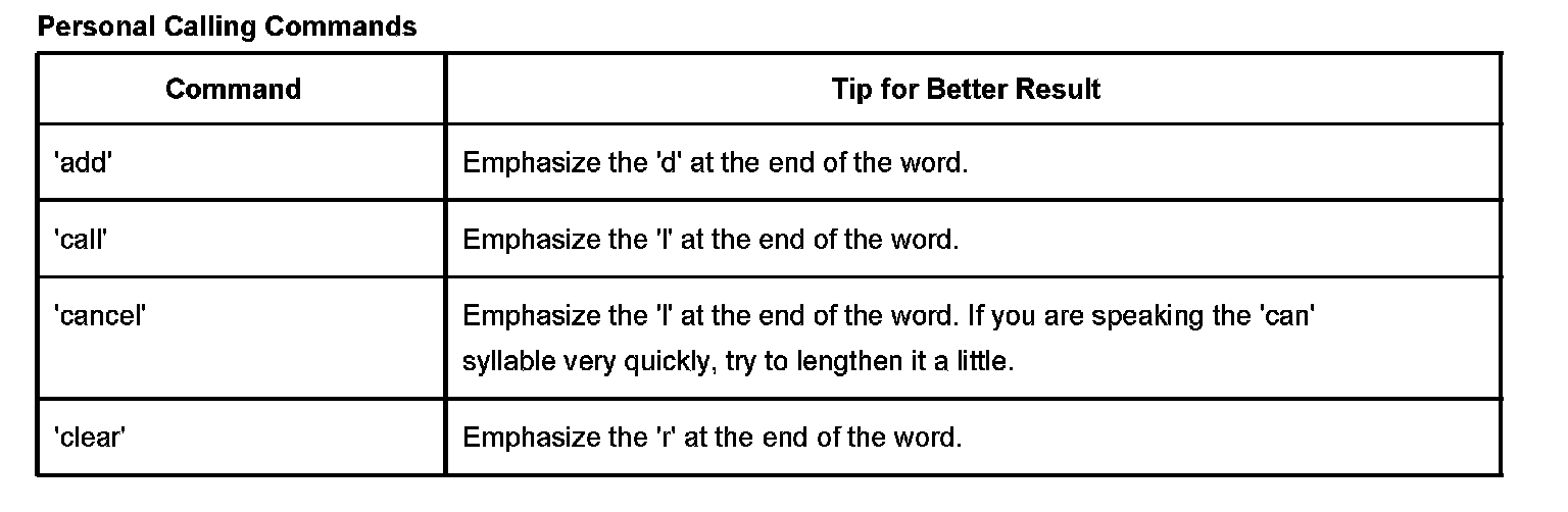 - Personal Calling uses a speech recognition system that resides in the vehicle. When the user presses the dot button, the system states, Ready, and listens for the user's command. The user can speak commands to control the hands-free phone.