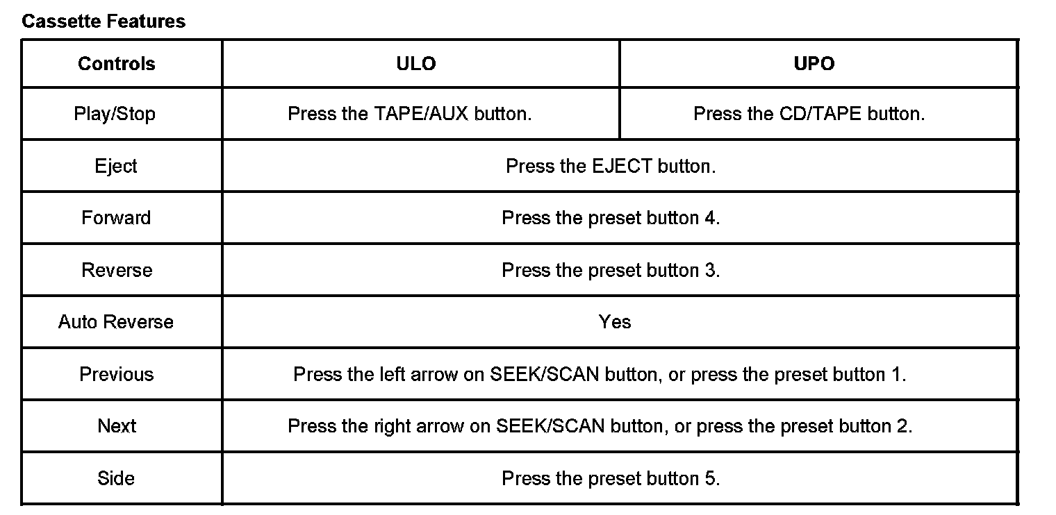 - The radio will display the following tape player error codes for tight tape, broken tape, and wrapped tape. If these conditions are detected, the radio will switch to the radio mode and eject the tape. The error code will be displayed for 5 seconds, followed by the tuner display, then the default.