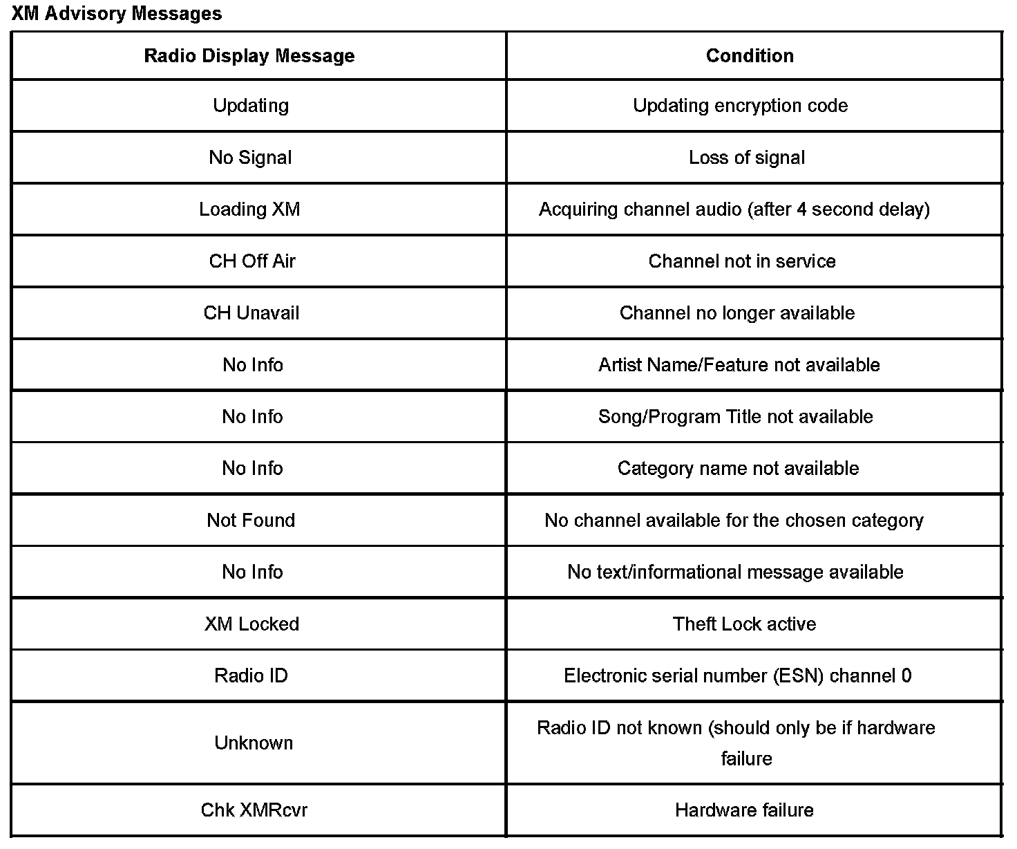 XM Advisory Messages: