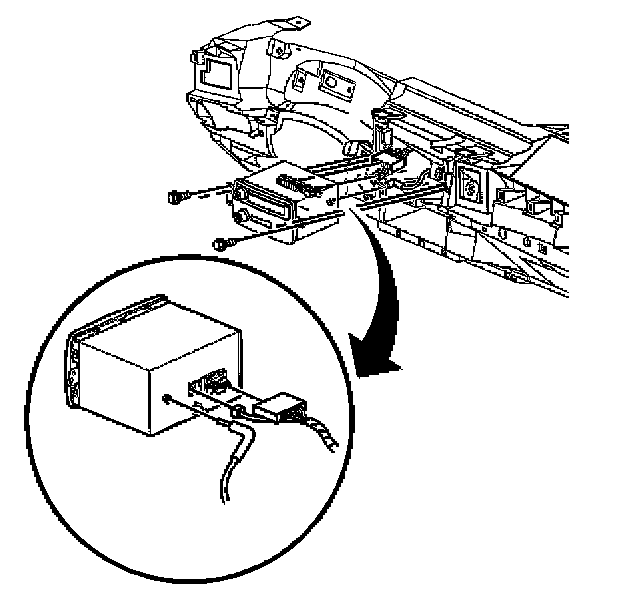 4. Disconnect the instrument panel wiring harness connector and the antenna cable connector from the radio.