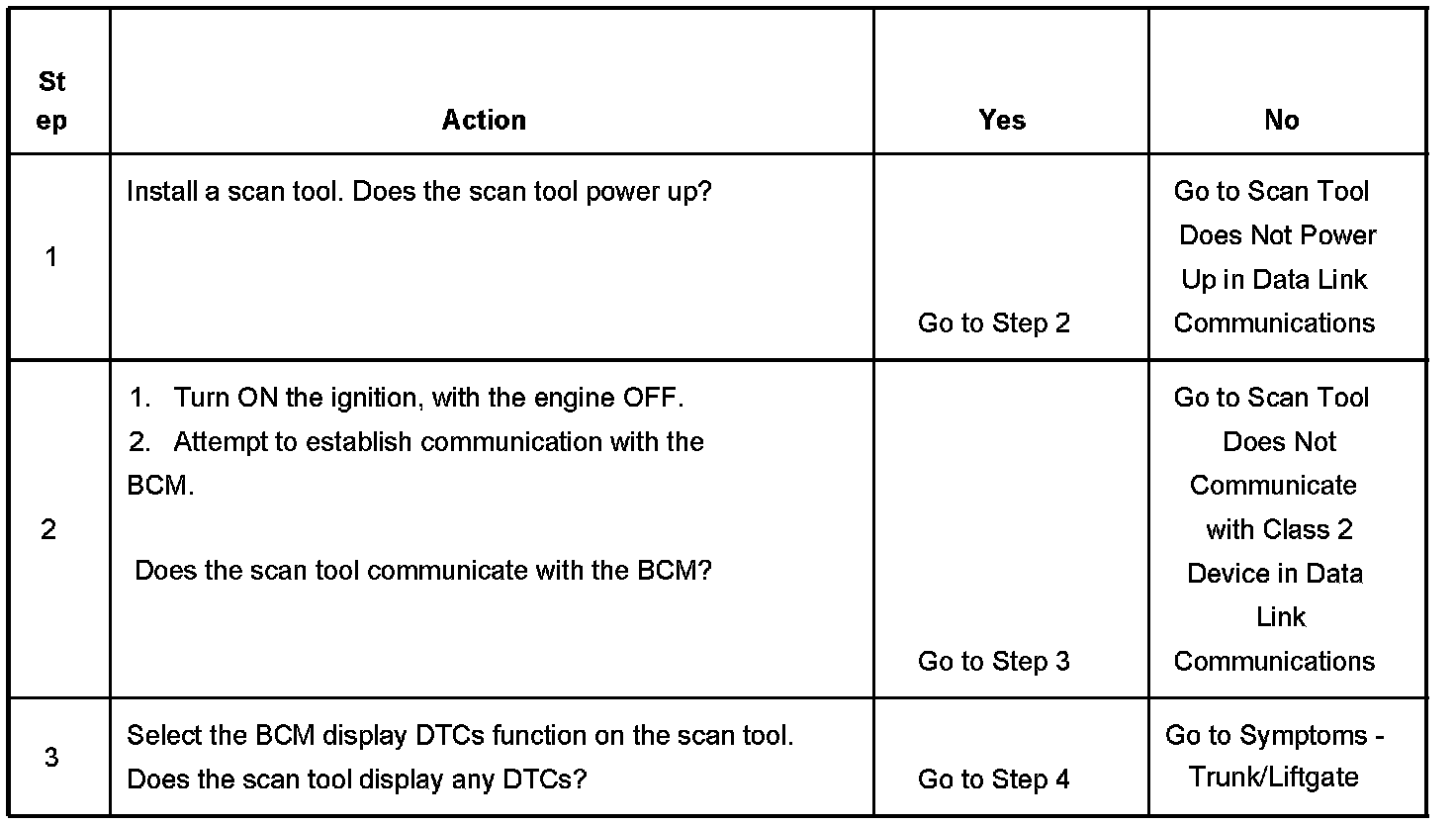 2. Lack of communication may be due to a partial malfunction of the class 2 serial data circuit or due to a total malfunction of the class 2 serial data circuit. The specified procedure will determine the particular condition.