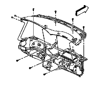 27. Starting at the right side, carefully lift upwards on the I/P upper trim panel in order to release the retainers. Continue working to your left until you have released all of the retainers.
