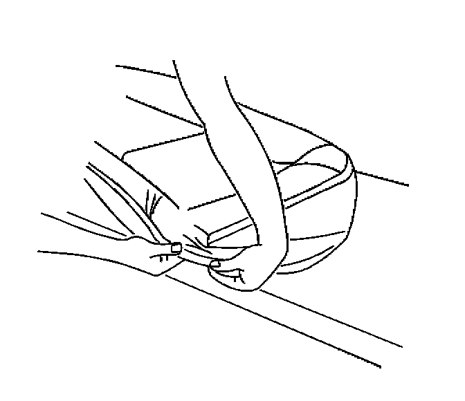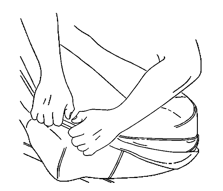 3. Reach inside of the rear seat cushion cover in order to unfasten the hook and the loop retainers securing the rear seat cushion cover to the pad.